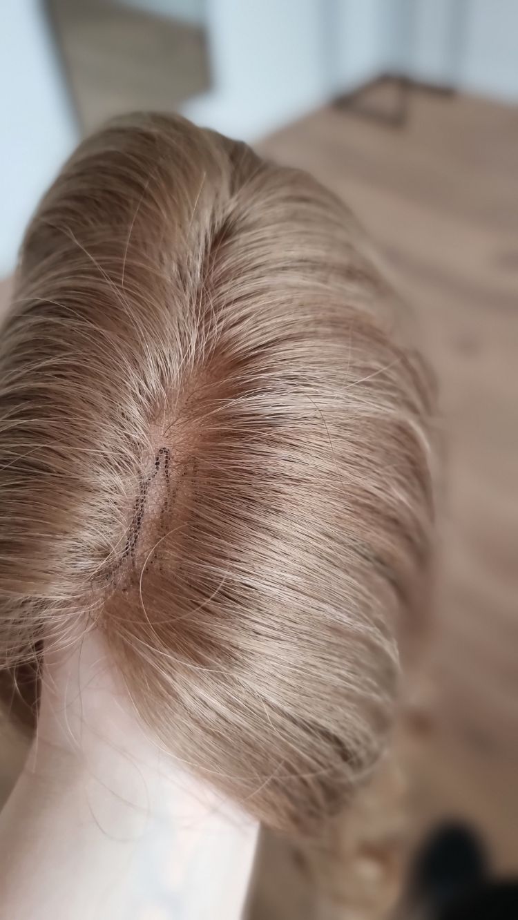 Ein Crown-Topper ist ein Haarteil mit sehr dünner Lace-Montur, das besonders für Frauen geeignet ist, die sich eine Lösung mit geringer Haardichte wünschen.