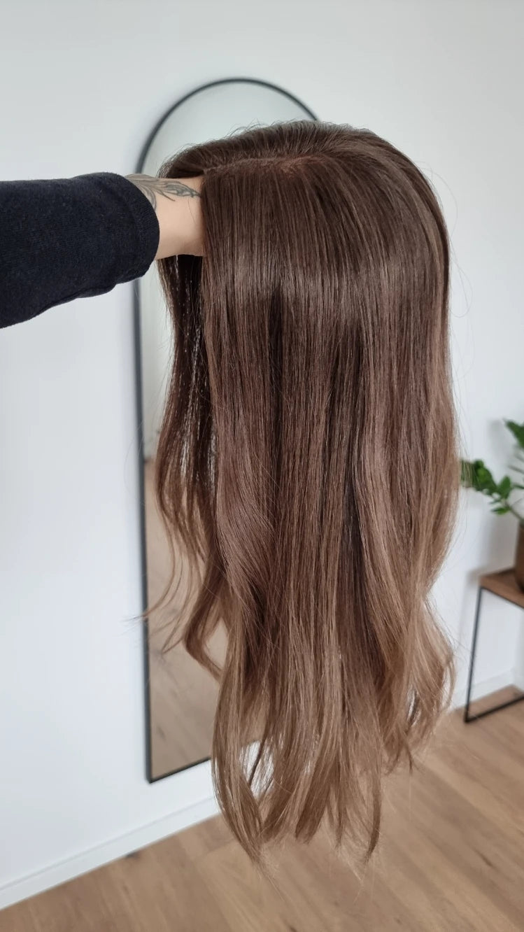 Ein Crown-Topper ist ein Haarteil mit sehr dünner Lace-Montur, das besonders für Frauen geeignet ist, die sich eine Lösung mit geringer Haardichte wünschen.