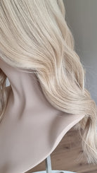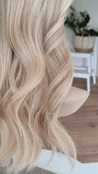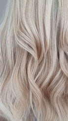 - Farbe Ansatz warmes Mittelblond, Längen Hellblond mit leichten Lowlights