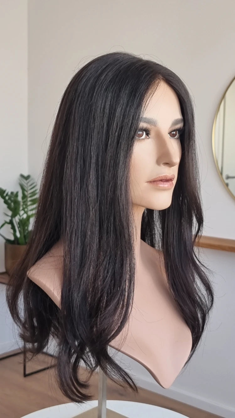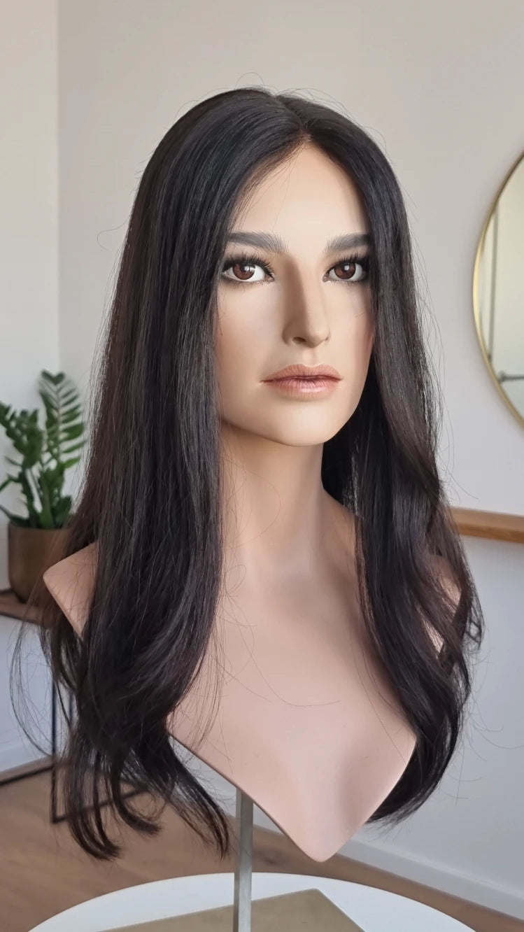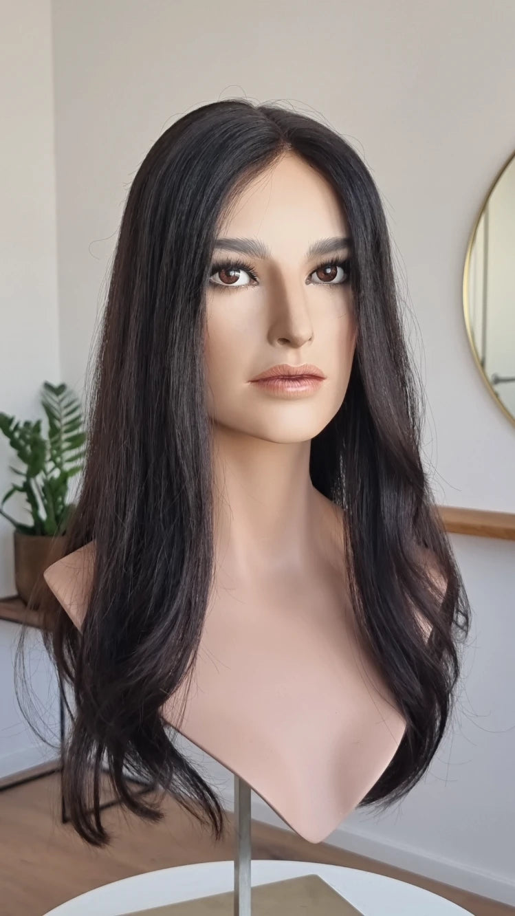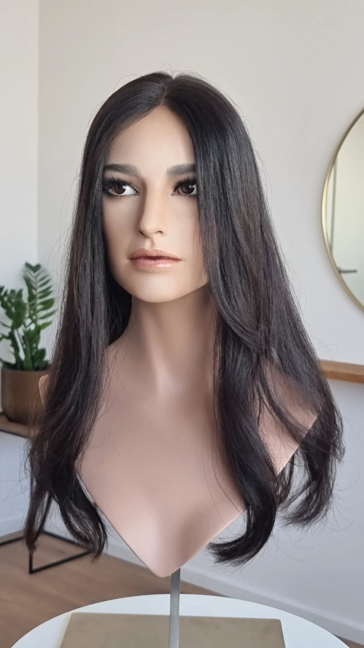 Ein Crown-Topper ist ein Haarteil mit sehr dünner Lace-Montur, das besonders für Frauen geeignet ist, die sich eine Lösung mit geringer Haardichte wünschen.