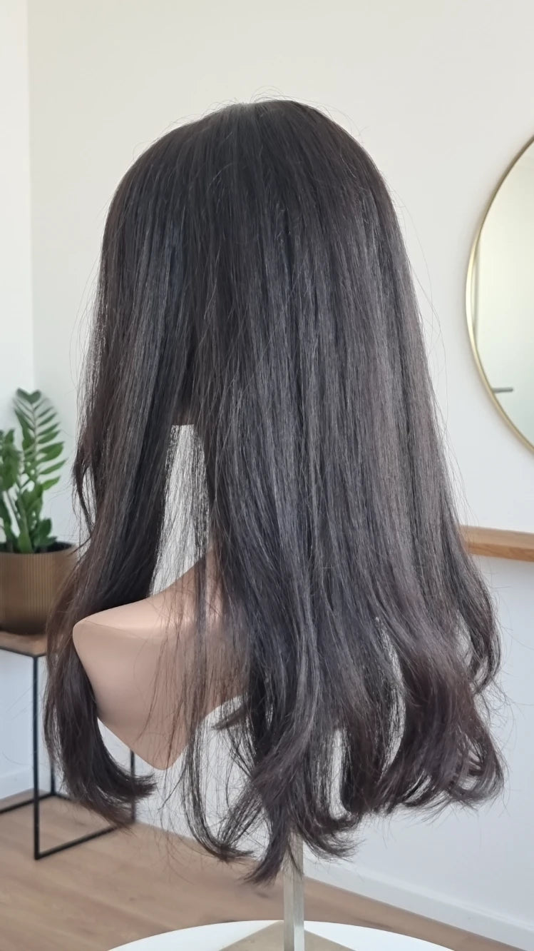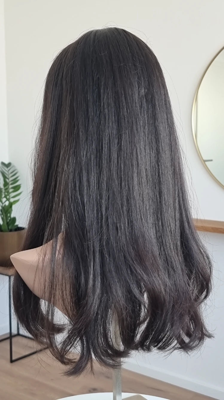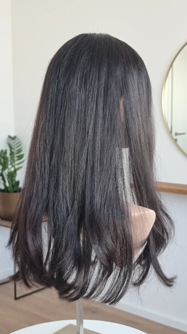 Du hast einen Stufenschnitt oder einen Bluntcut (alle Haare sind gleich lang)? - dann sollte der Topper zu deiner Frisur passend eingeschnitten werden.