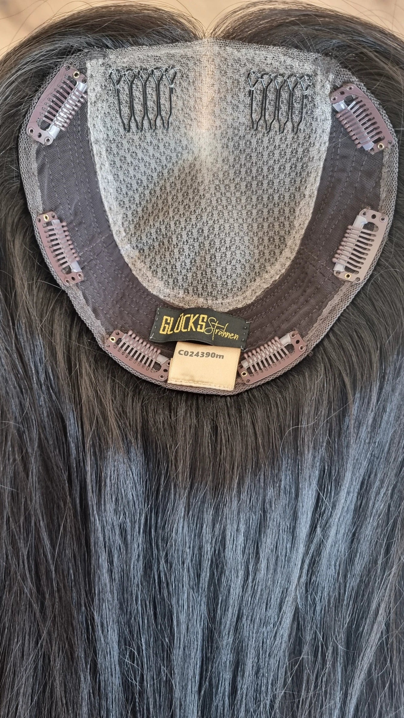 Der Crown-Topper ist extrem flach und liegt sehr dicht am eigenen Kopf an - das sorgt für ein sehr natürliches Aussehen ohne unerwünschtes Volumen am Oberkopf,
