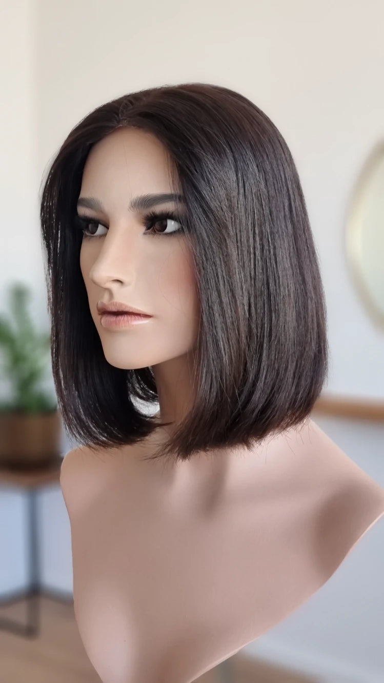 Du hast einen Stufenschnitt oder einen Bluntcut (alle Haare sind gleich lang)? - dann sollte der Topper zu deiner Frisur passend eingeschnitten werden.