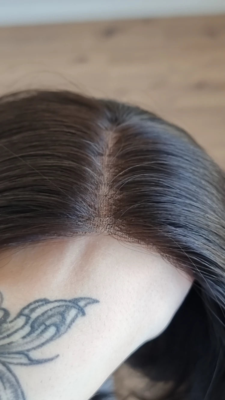 Ein Crown-Topper ist ein Haarteil mit sehr dünner Lace-Montur, das besonders für Frauen geeignet ist, die sich eine Lösung mit geringer Haardichte wünschen.
