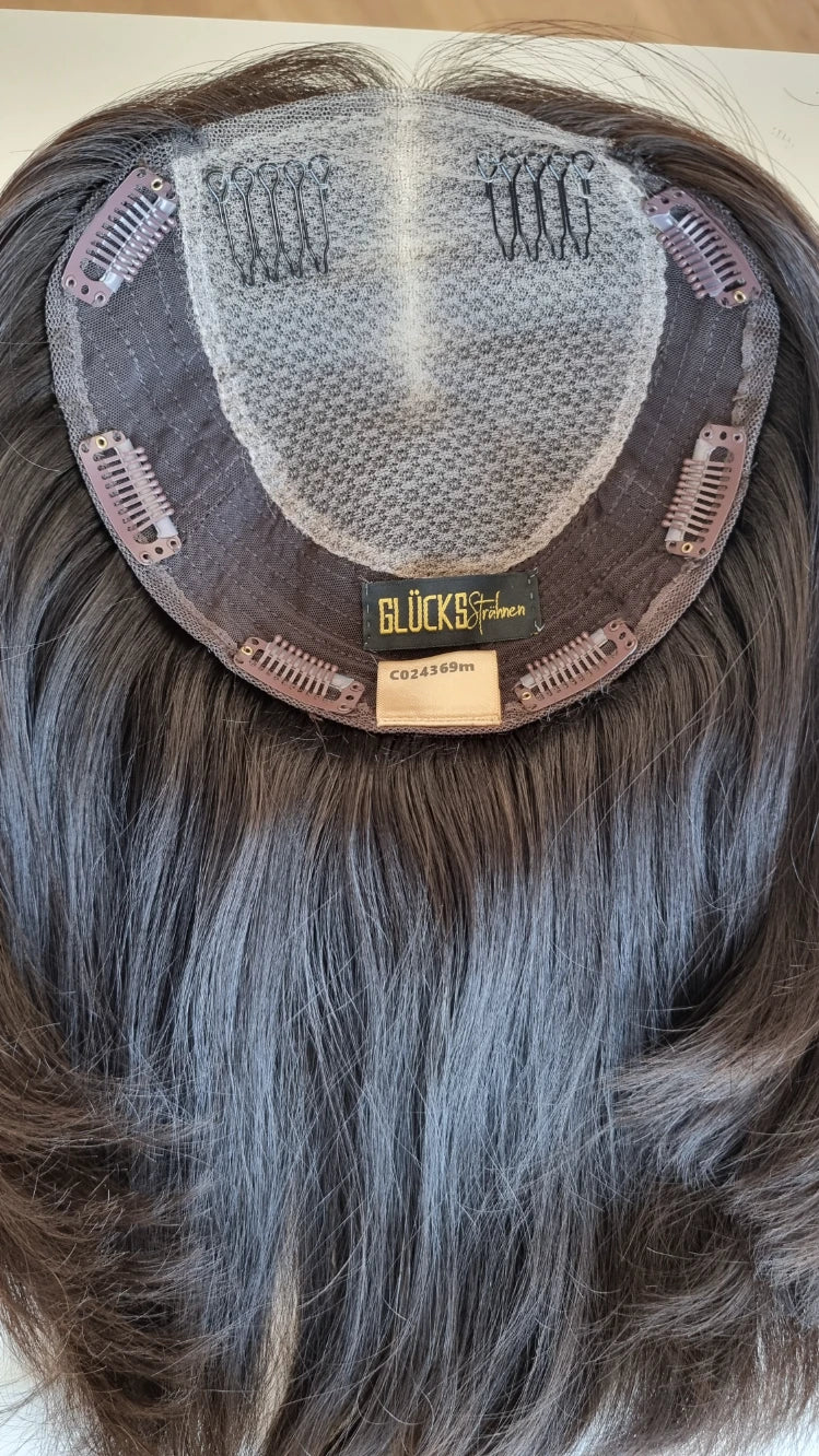 Der Crown-Topper ist extrem flach und liegt sehr dicht am eigenen Kopf an - das sorgt für ein sehr natürliches Aussehen ohne unerwünschtes Volumen am Oberkopf,