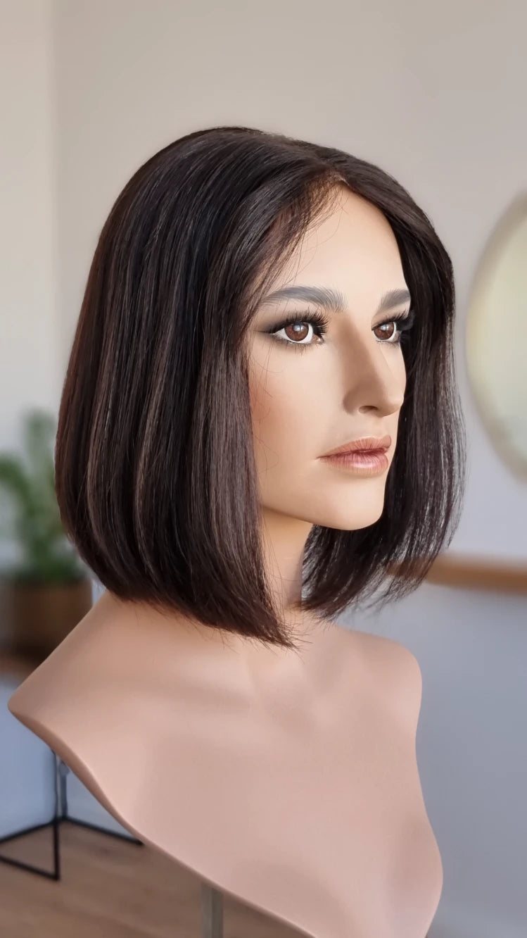 Ein Crown-Topper ist ein Haarteil mit sehr dünner Lace-Montur, das besonders für Frauen geeignet ist, die sich eine Lösung mit geringer Haardichte wünschen.