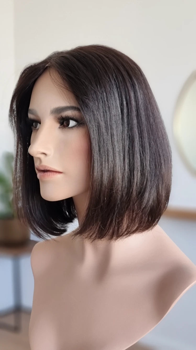 Du hast einen Stufenschnitt oder einen Bluntcut (alle Haare sind gleich lang)? - dann sollte der Topper zu deiner Frisur passend eingeschnitten werden.