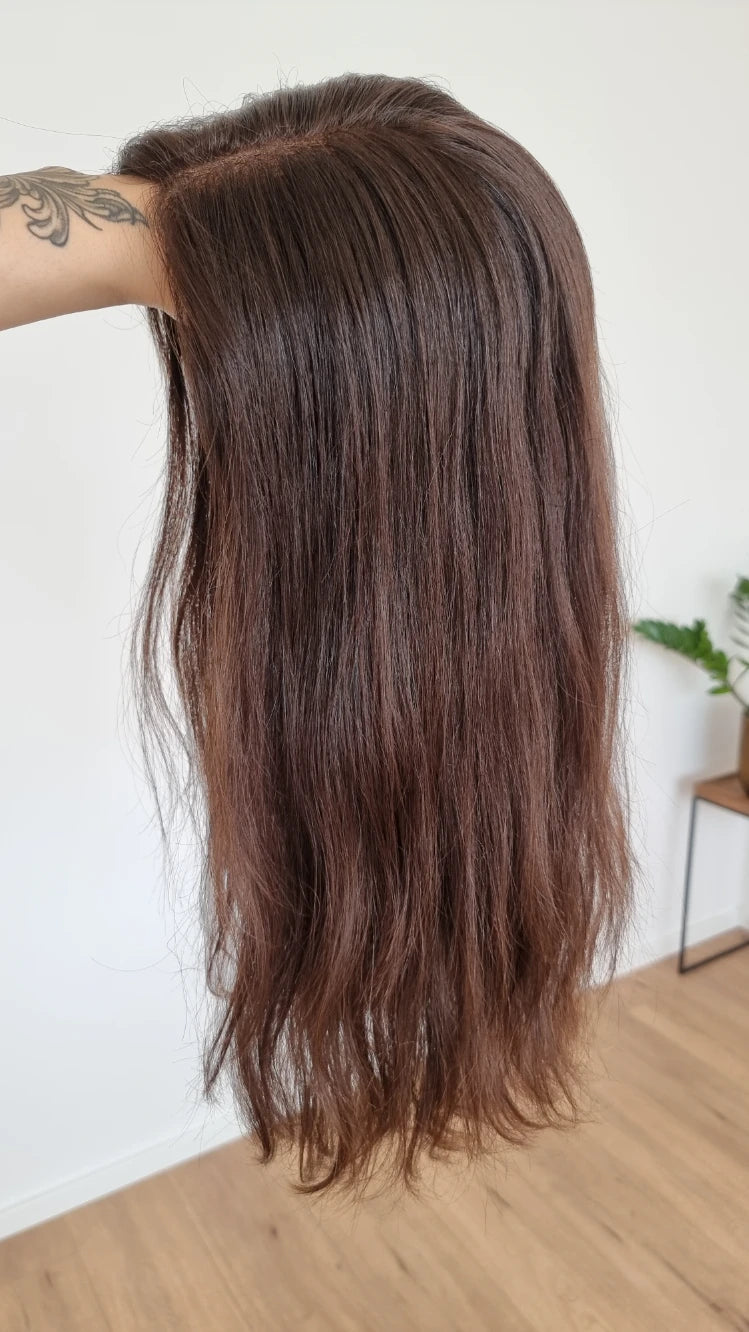 Ein Crown-Topper ist ein Haarteil mit sehr dünner Lace-Montur, das besonders für Frauen geeignet ist, die sich eine Lösung mit geringer Haardichte wünschen.
