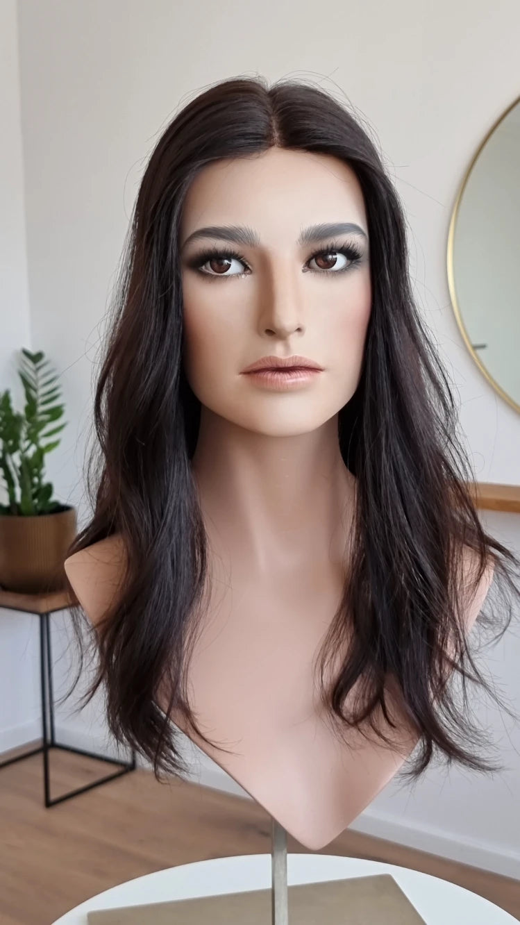 Diese Art von Haarteil ist besonders bei Frauen beliebt, die unter diffusem Haarausfall, erblich bedingtem Haarausfall oder einfach unter einem ausgedünnten Scheitel leiden.