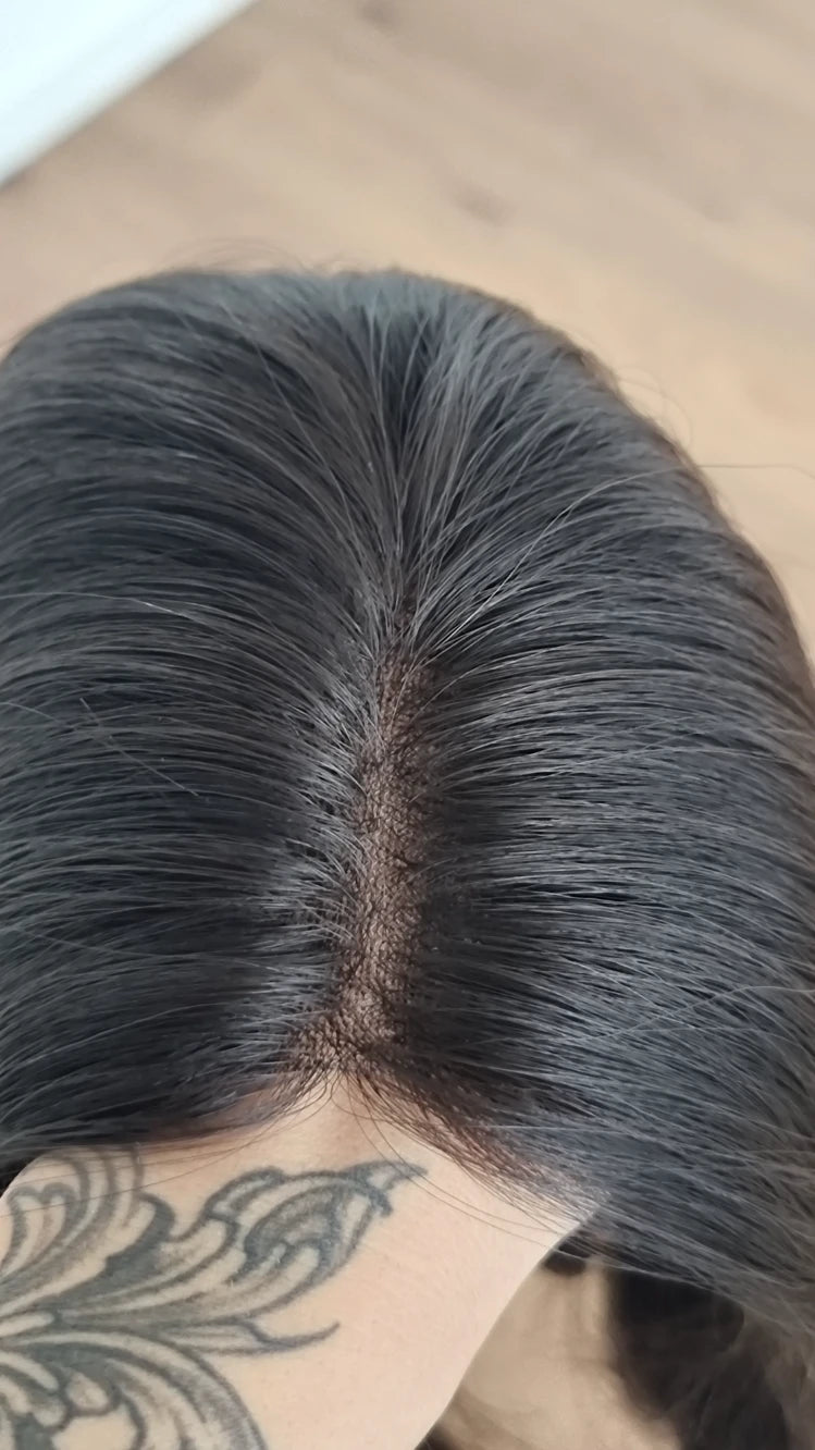 Ein Crown-Topper ist ein Haarteil mit sehr dünner Lace-Montur, das besonders für Frauen geeignet ist, die sich eine Lösung mit geringer Haardichte wünschen.