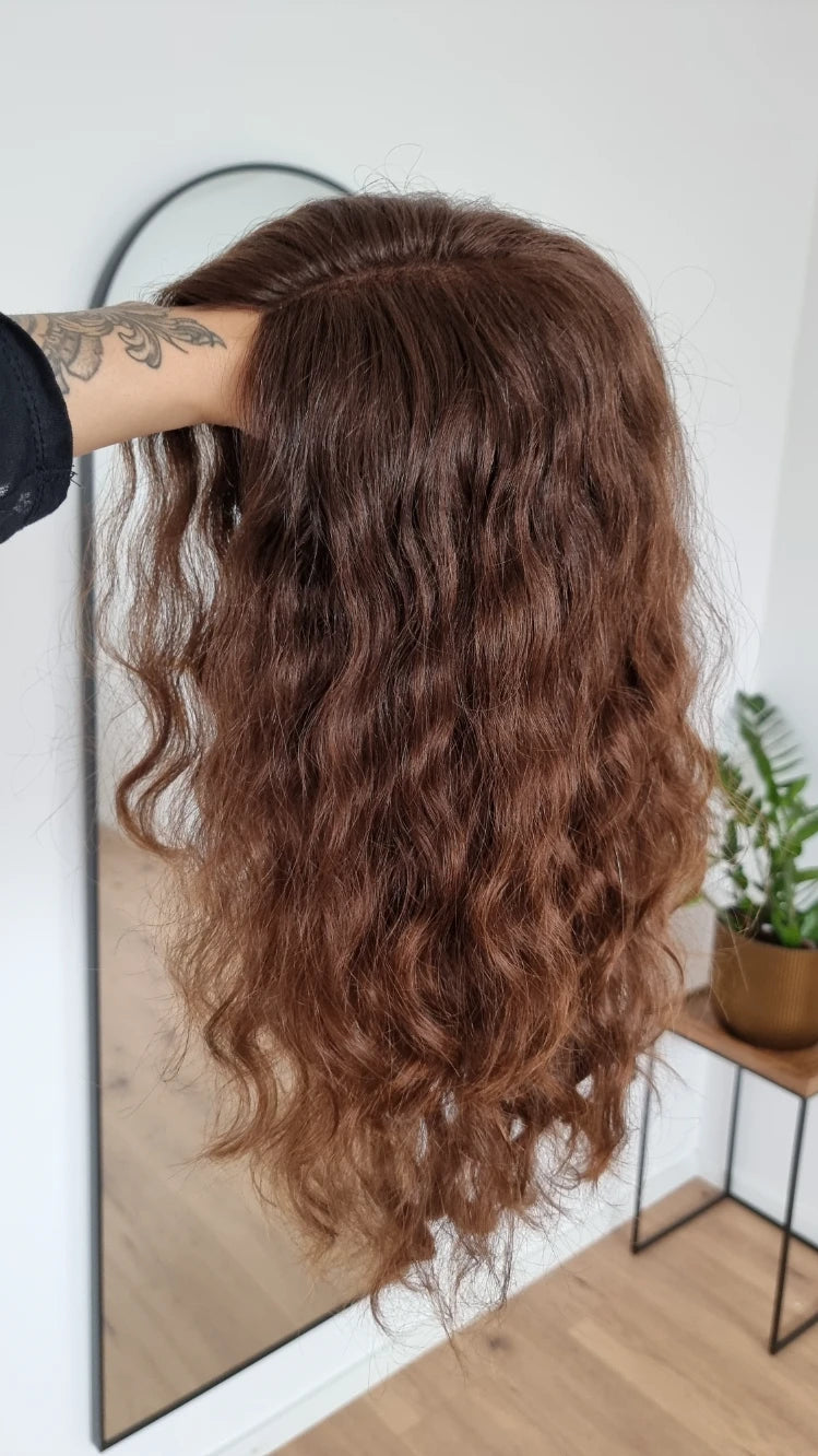 Der Crown-Topper muss wie dein echtes Haar regelmäßig gewaschen werden, je nach Intensivität der Nutzung alle 7-10 Tage.