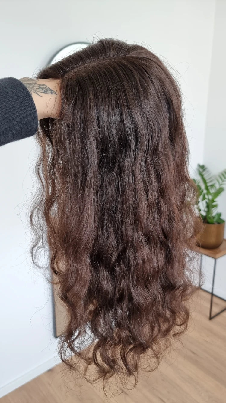 Ein Crown-Topper ist ein Haarteil mit sehr dünner Lace-Montur, das besonders für Frauen geeignet ist, die sich eine Lösung mit geringer Haardichte wünschen.