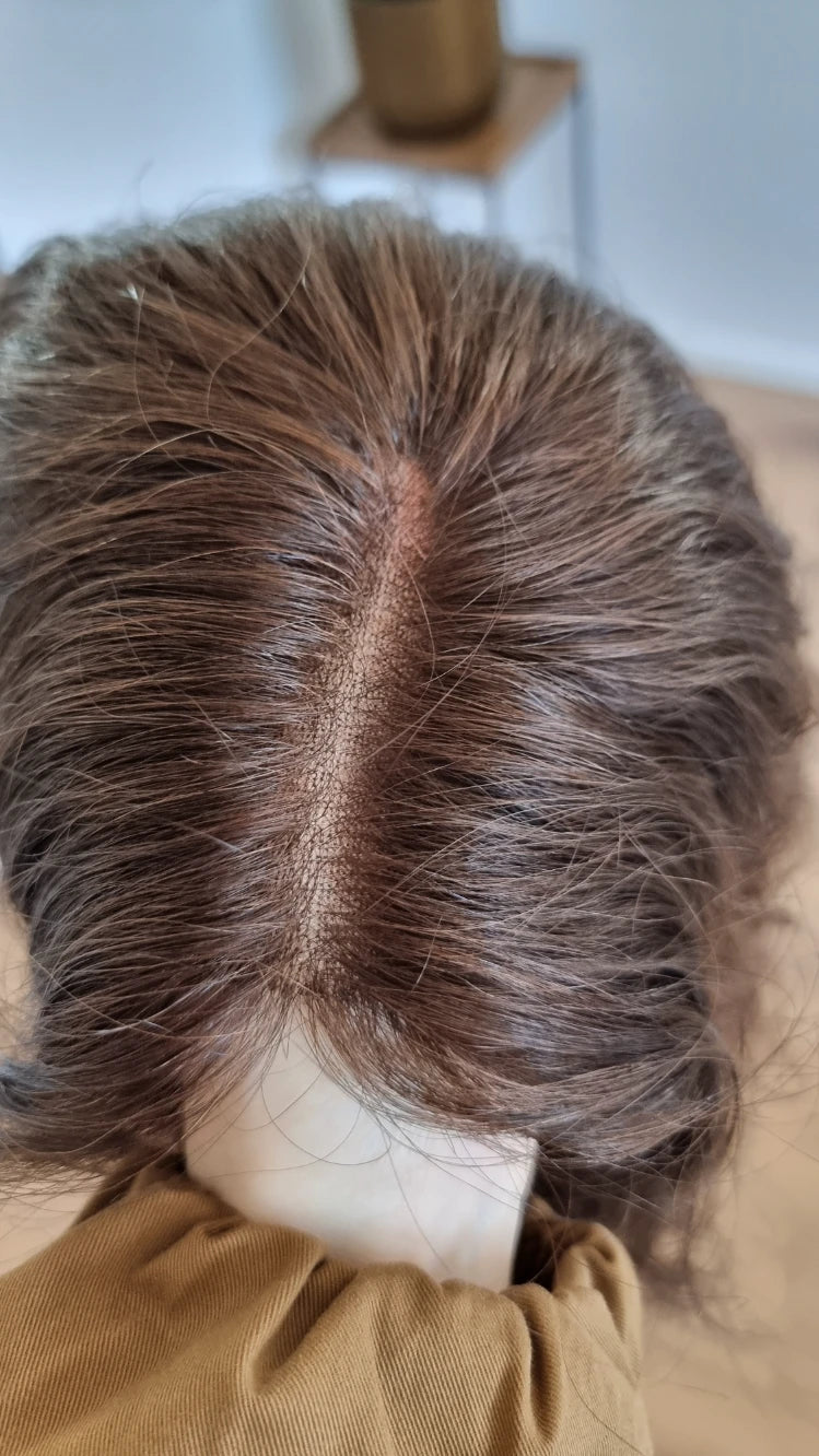 Diese Art von Haarteil ist besonders bei Frauen beliebt, die unter diffusem Haarausfall, erblich bedingtem Haarausfall oder einfach unter einem ausgedünnten Scheitel leiden.