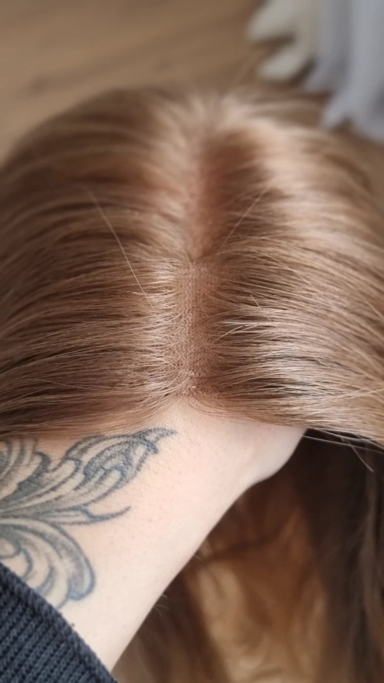 Der Crown-Topper muss wie dein echtes Haar regelmäßig gewaschen werden, je nach Intensivität der Nutzung alle 7-10 Tage.