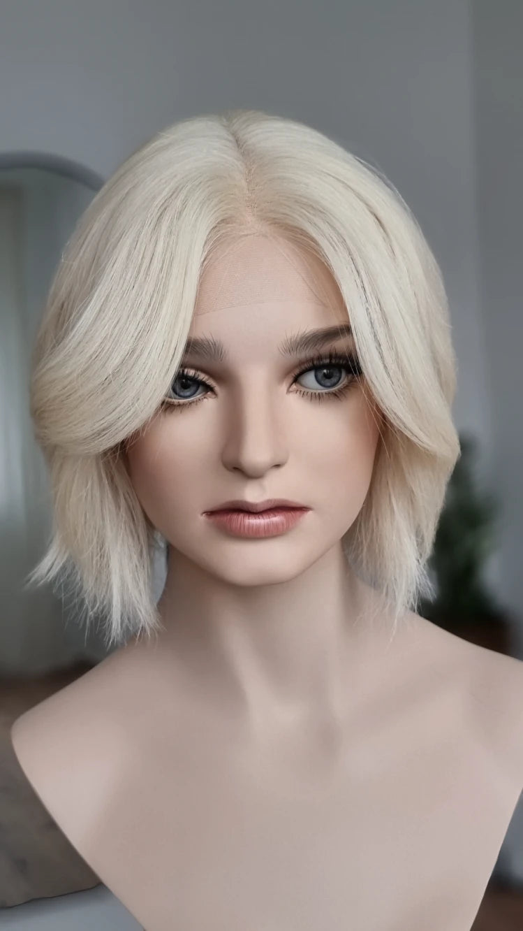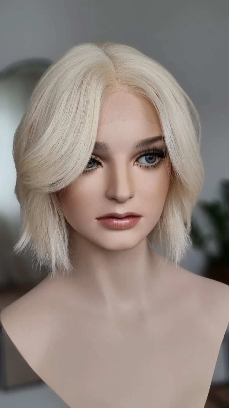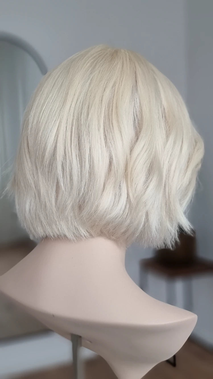 Diese Perücke besteht zu 100 % aus echtem menschlichem Remy-Haar und kann ganz normal wie das eigene Haar frisiert werden. Du kannst es glätten, föhnen und locken wie es dir beliebt, solltest aber darauf achten, Hitzeschutz ohne Alkohol und reichhaltige Pflegeprodukte zu verwenden.