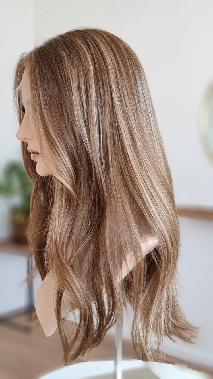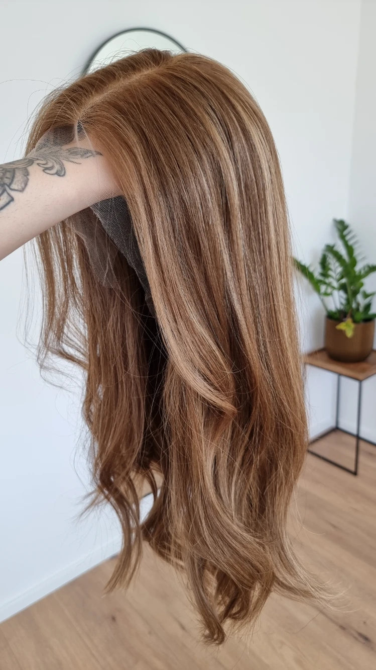 • Farbe Hellbraun mit blonden Highlights