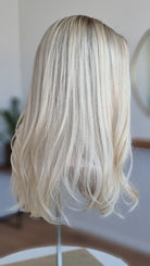 - Farbe Ansatz aschiges Mittelblond, Längen hellblond
