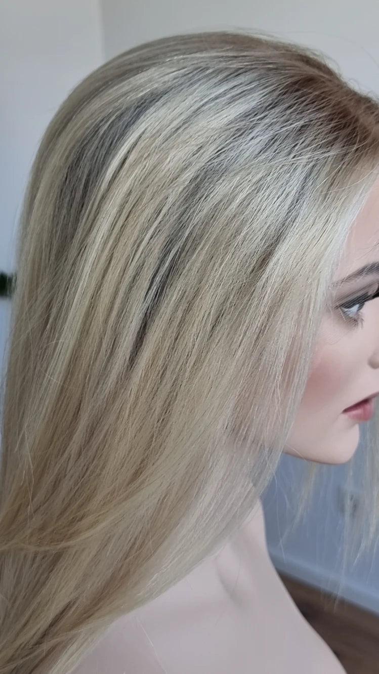 • Farbe Ansatz aschiges Dunkelblond, Längen Hellblond