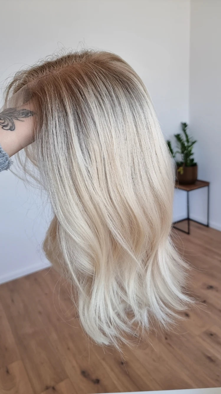 - Farbe Ansatz aschiges Dunkelblond, Längen helles Blond