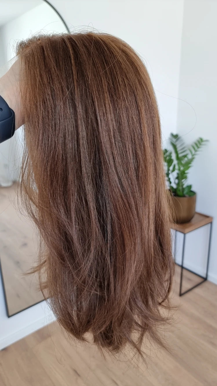 Diese Perücke besteht zu 100 % aus echtem Remy-Haar und kann wie das eigene Haar frisiert werden. Du kannst es glätten, föhnen und locken wie es dir beliebt und es sind keine teuren Pflegeprodukte notwendig. Alles, was du an Pflege benötigst, erhältst du im Frisörbedarf
