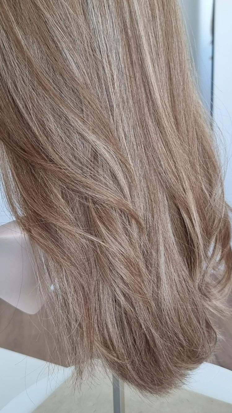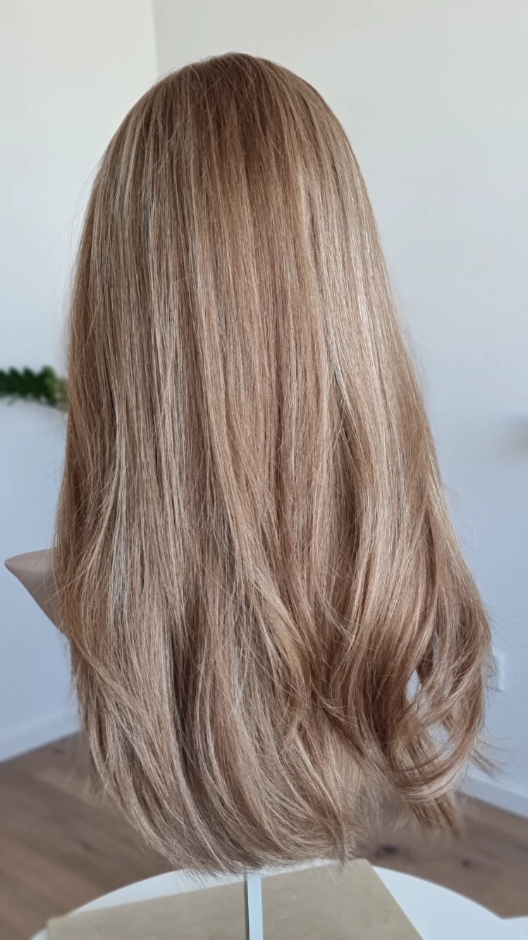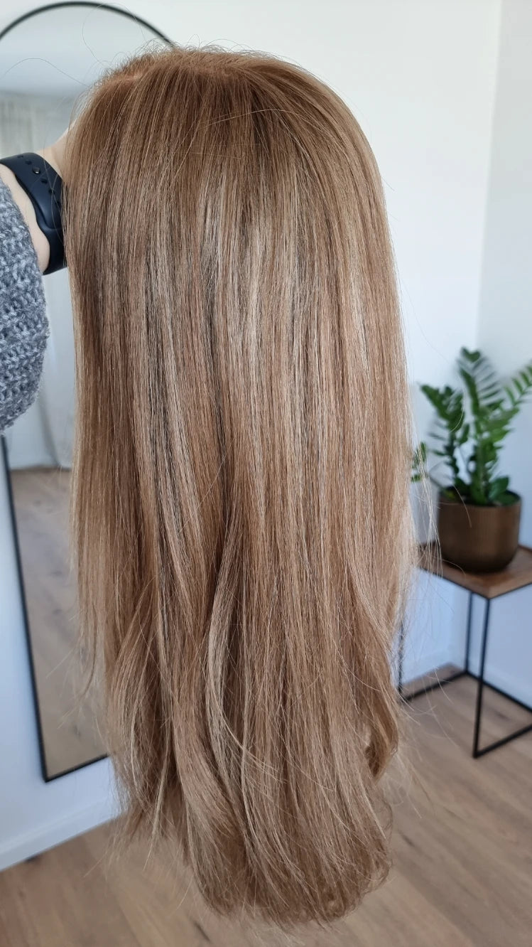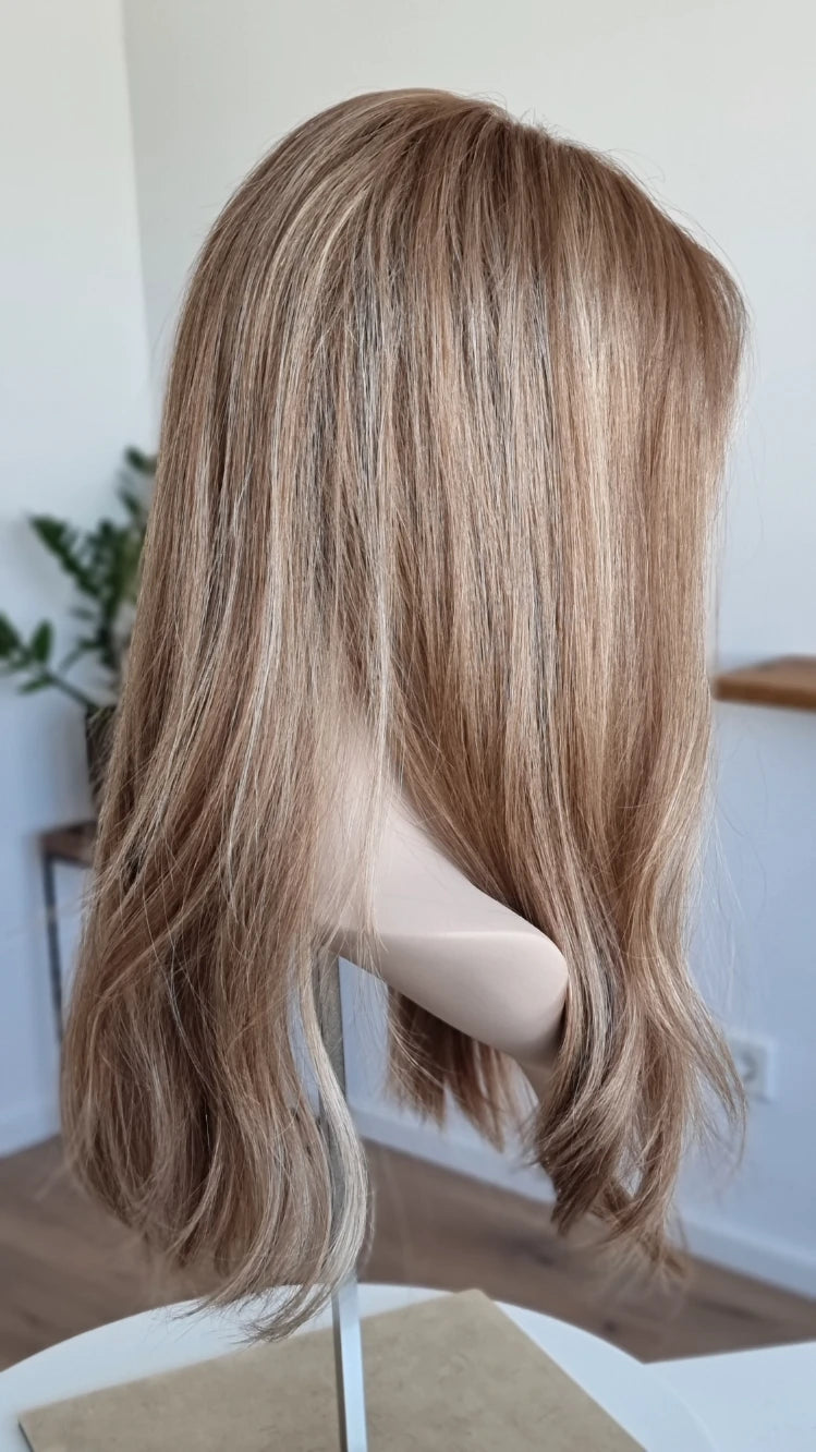 - Farbe neutrales Dunkelblond mit hellblonden Highlights