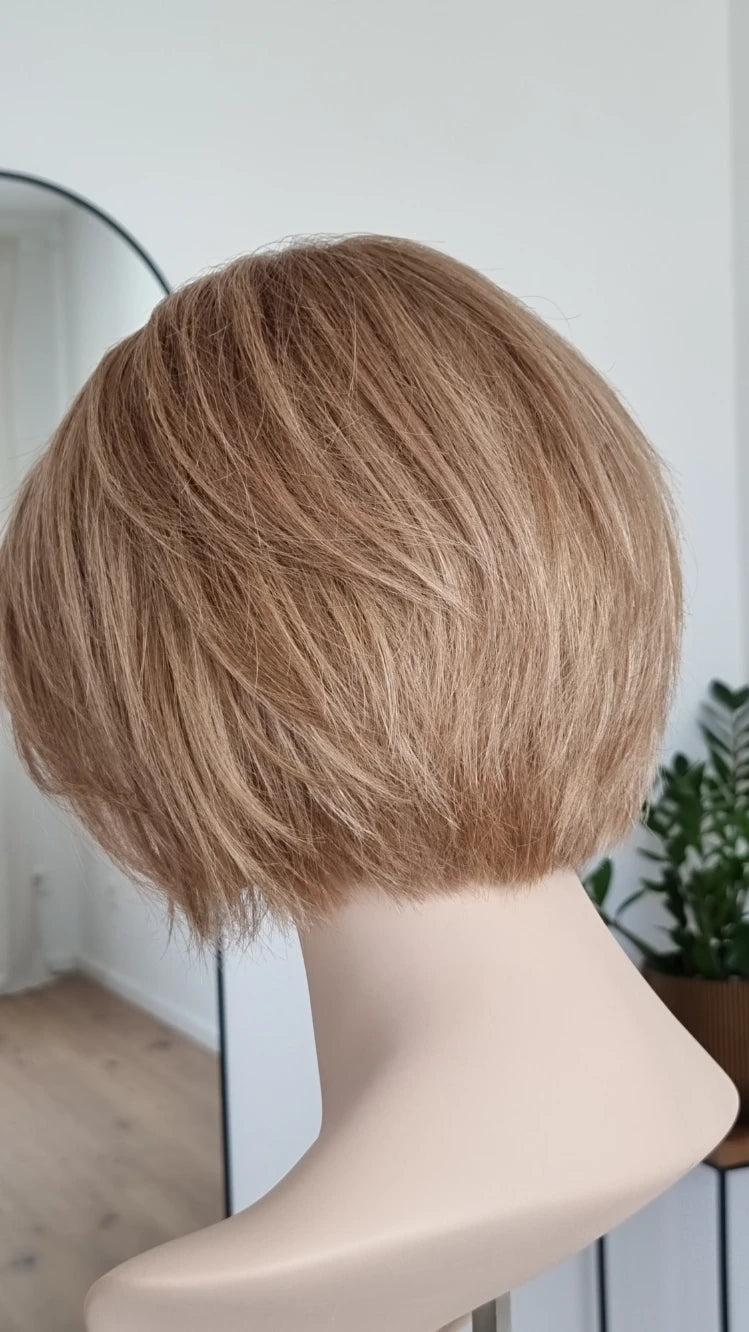 • Haarlänge stufig 15-20 cm vom Scheitel bis zu den Spitzen