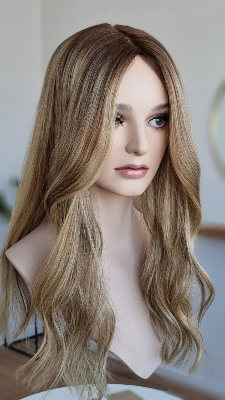Bei Toppern ist ein genaues Farbmatch zu deinen Haaren wichtig, damit ein realistischer Look erzielt werden kann. Der Topper sollte also möglichst deinen Farbton treffen, das heißt wenn du Blond bist könnte eine Ice Ice Baby, Honey Swirl oder Goldstück zu dir passen.