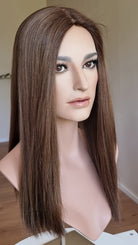 Dein eigenes Haar ist schulterlang oder kürzer? Dann solltest du keinen Topper wählen, der mehr als 5 cm länger ist. Bei dieser Länge vermischen sich das Eigen- und Topperhaar nicht optimal und es kommt zu einer deutlich sichtbaren Stufe. Das beeinträchtigt den Realismus sehr und führt zu keinem schönen Ergebnis. Bitte wähle dann einen Topper, der gleich lang oder bis zu 5 cm länger ist.