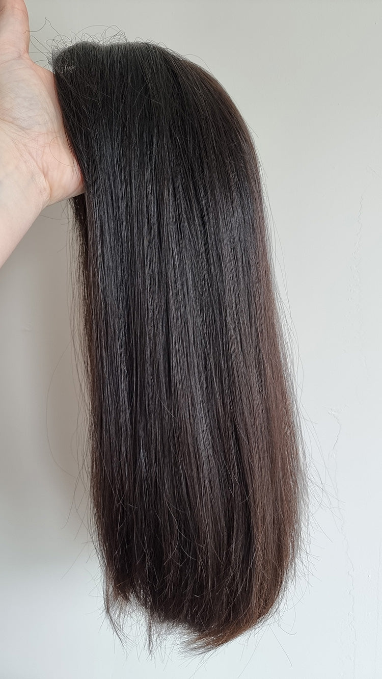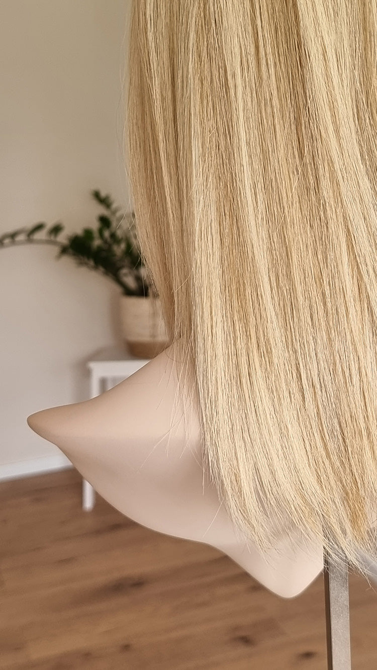 Für unsere Crown-Topper verwenden wir nur hochwertiges 100 % Remy-Echthaar. Dabei handelt es sich nicht um eine Herkunftsbezeichnung, sondern um ein Qualitätsmerkmal: Remy-Haare werden alle in ihrer natürlichen Wuchsrichtung verarbeitet, sodass die Schuppenschicht bei allen Haaren in dieselbe Richtung ausgerichtet ist. Das verhindert ein Verfilzen der Haare.