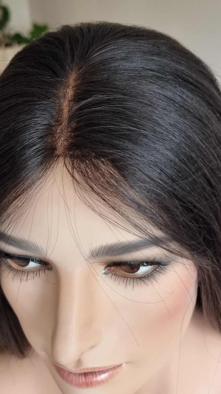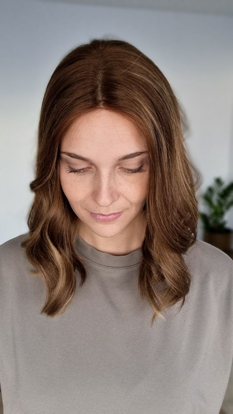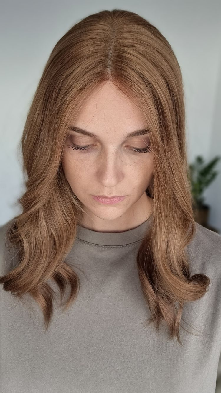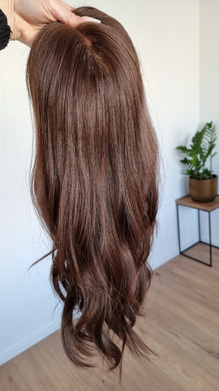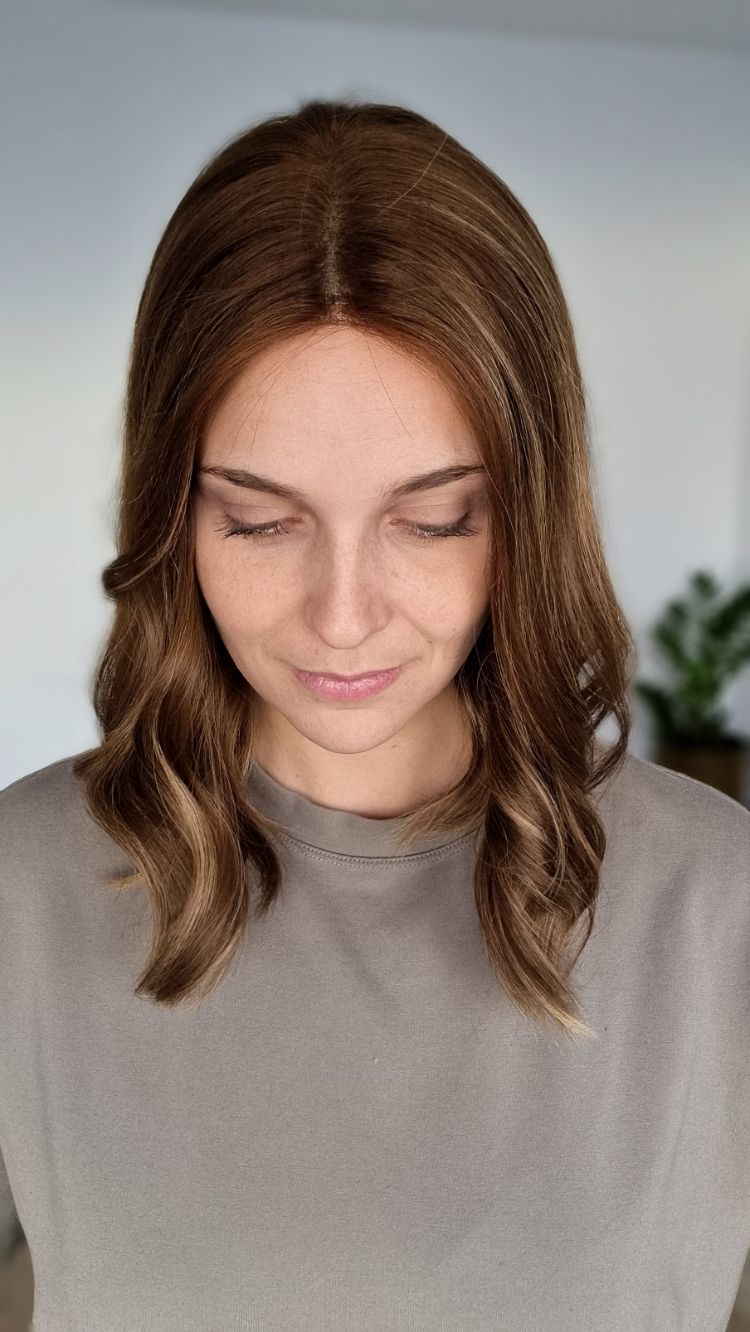 Ein Crown-Topper ist ein Haarteil mit sehr dünner Lace-Montur, das besonders für Frauen geeignet ist, die sich eine Lösung mit geringer Haardichte wünschen.