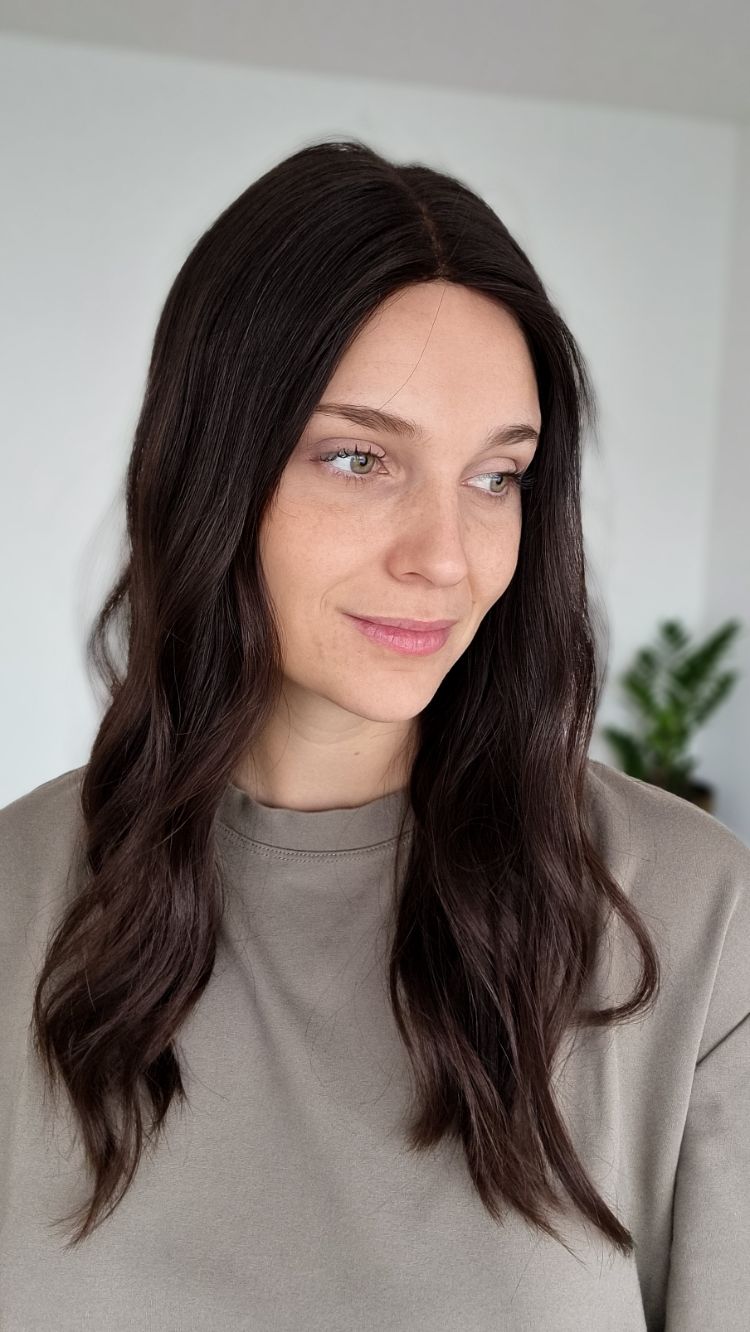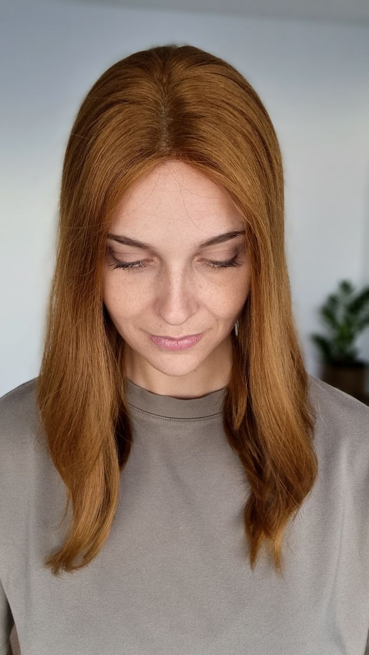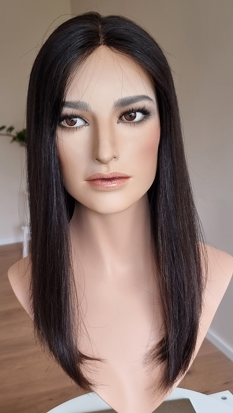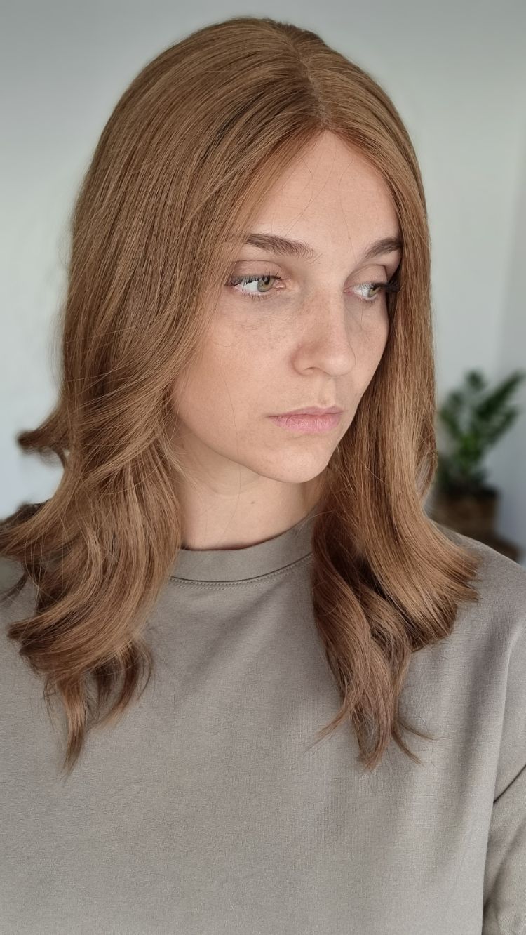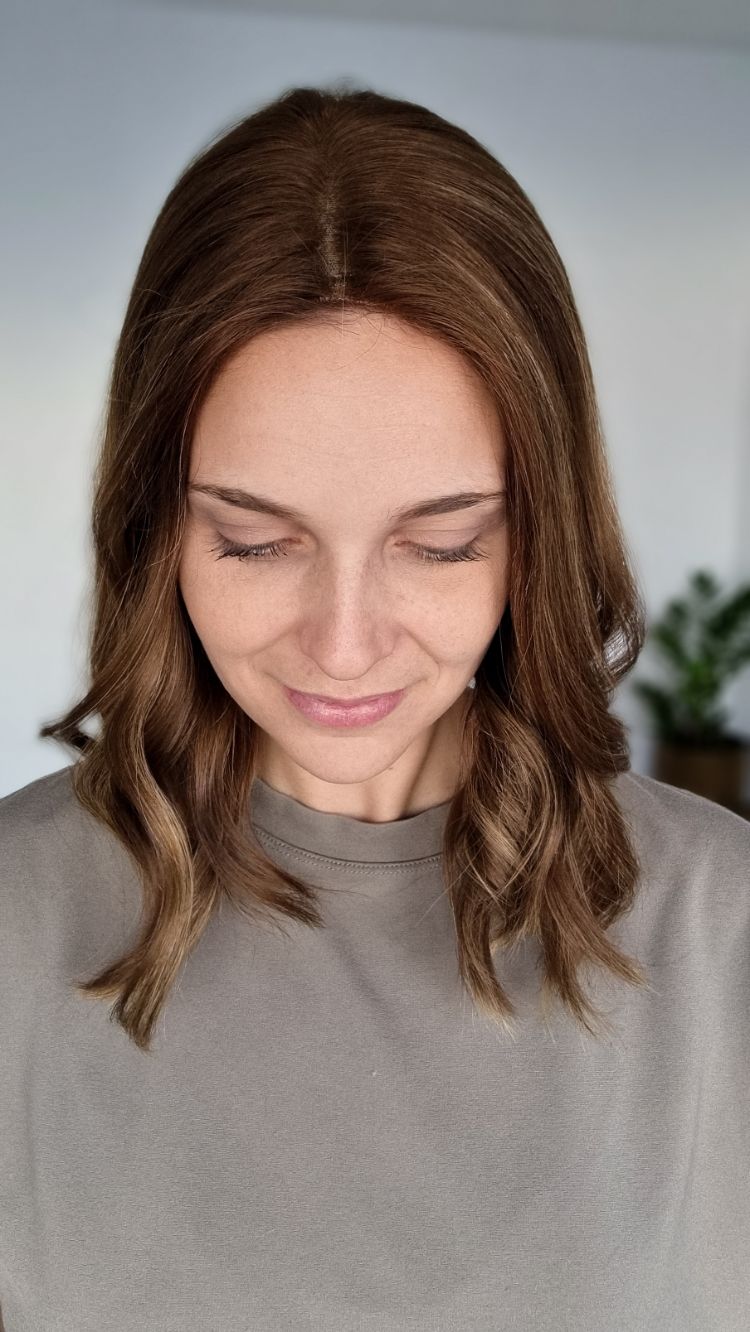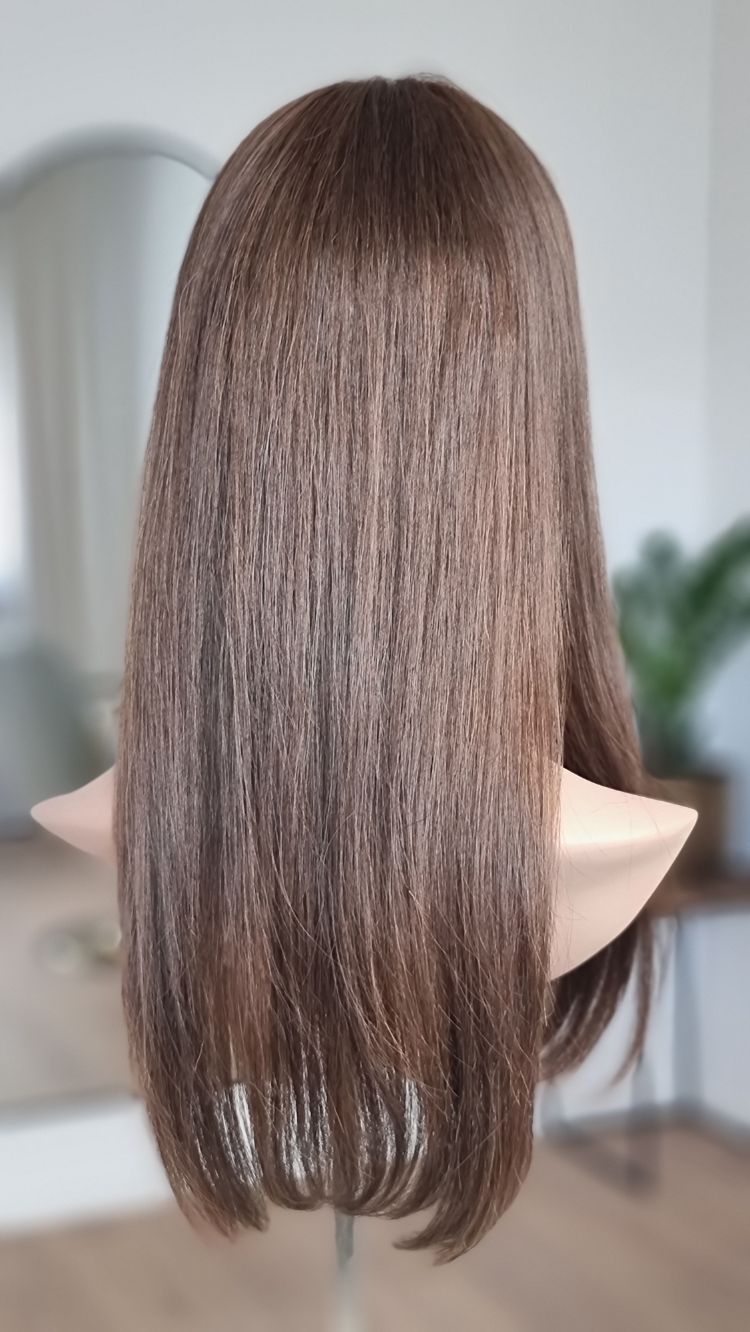 Ein Crown-Topper ist ein Haarteil mit sehr dünner Lace-Montur, das besonders für Frauen geeignet ist, die sich eine Lösung mit geringer Haardichte wünschen.