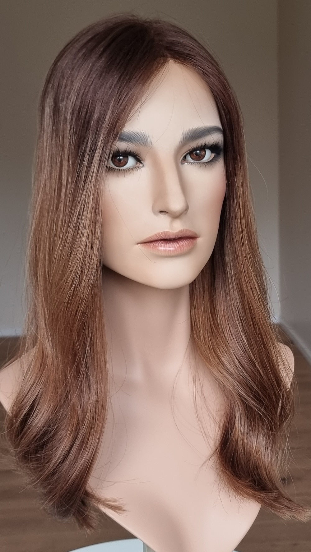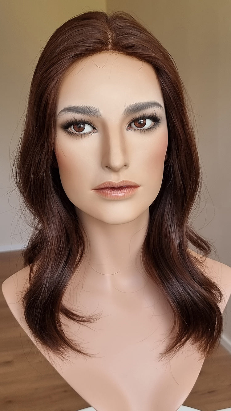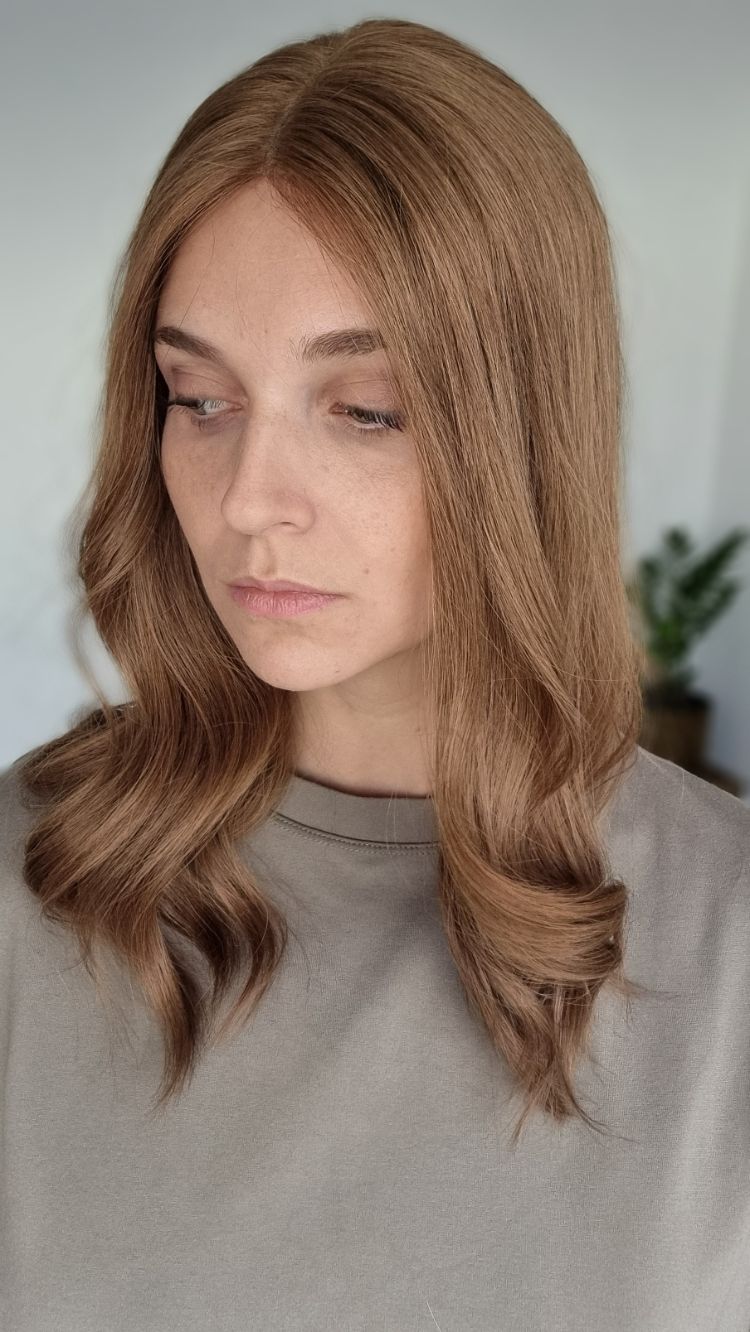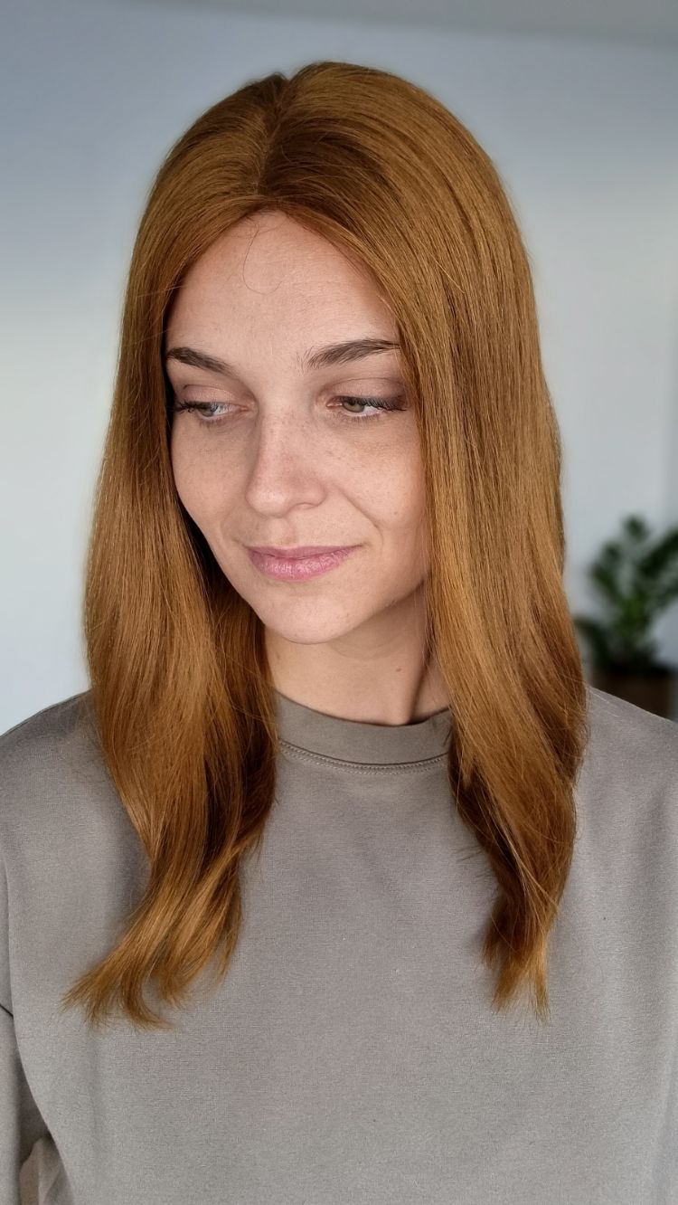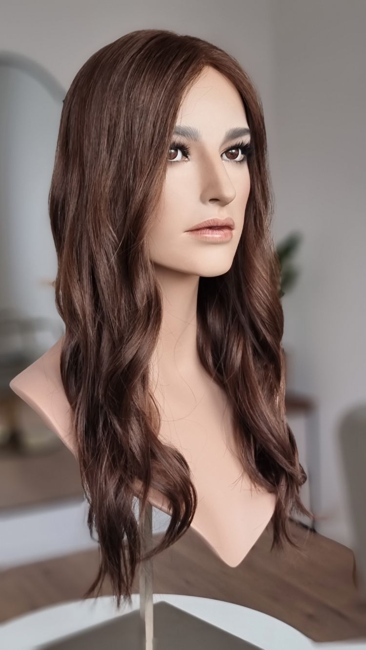 Ein Crown-Topper ist ein Haarteil mit sehr dünner Lace-Montur, das besonders für Frauen geeignet ist, die sich eine Lösung mit geringer Haardichte wünschen.