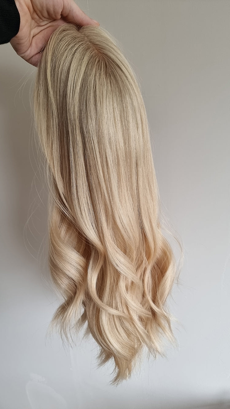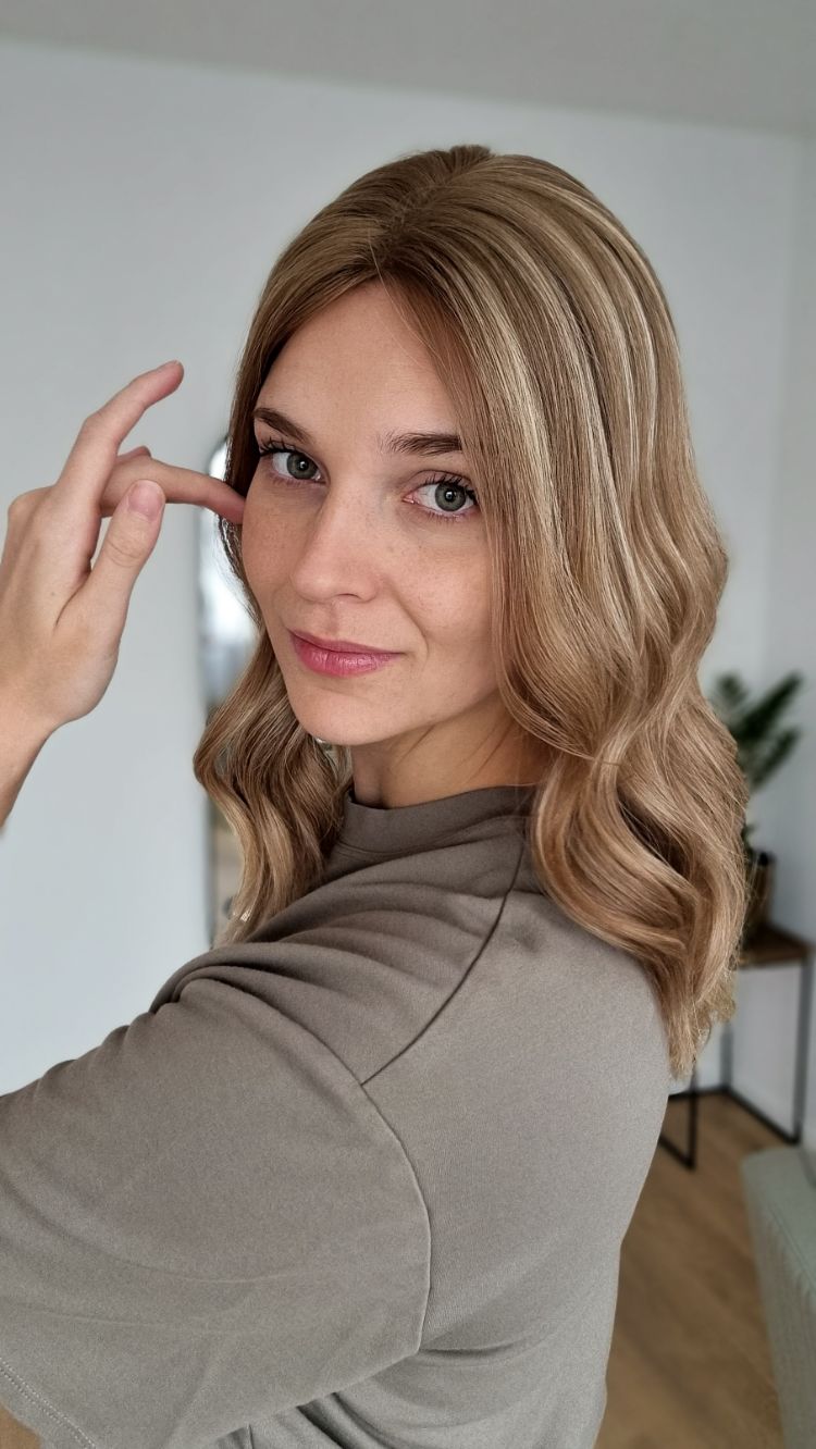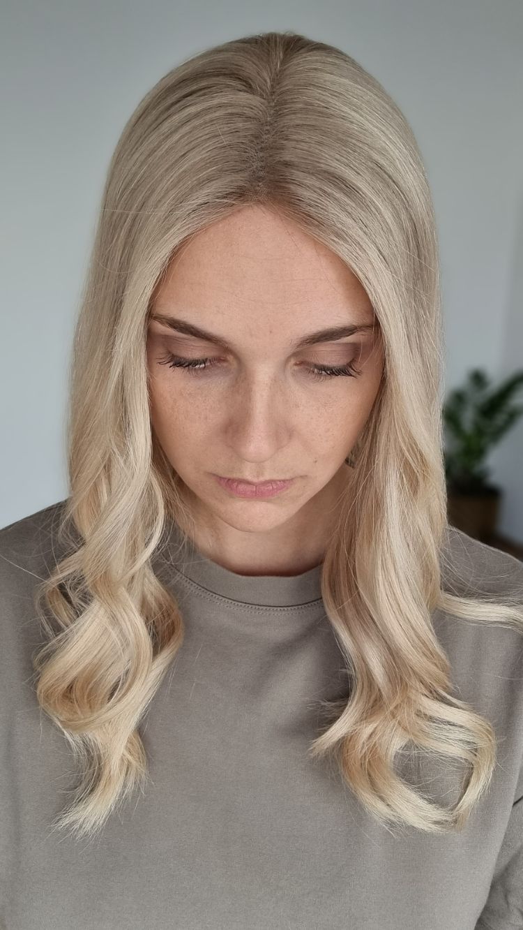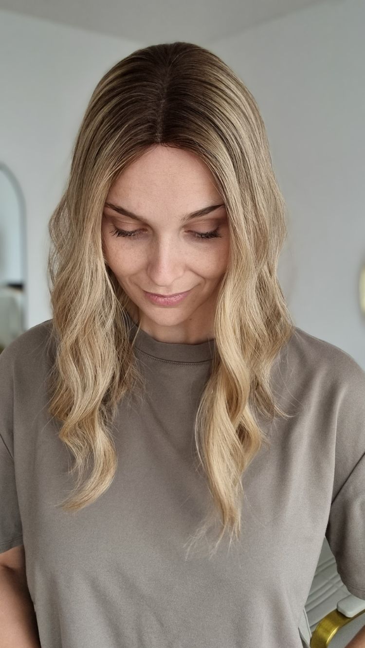 Bei Toppern kommt es generell auf das Farbmatch an, damit ein realistischer Look erzielt werden kann. Der Topper sollte also möglichst deinen Farbton treffen, das heißt wenn du Blond bist könnte eine Ice Ice Baby, Honey Swirl oder Goldstück zu dir passen.