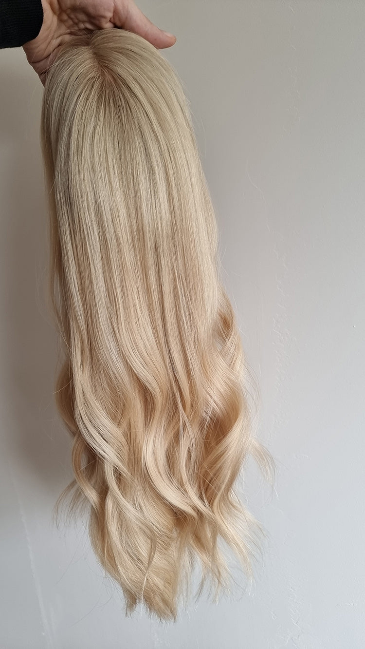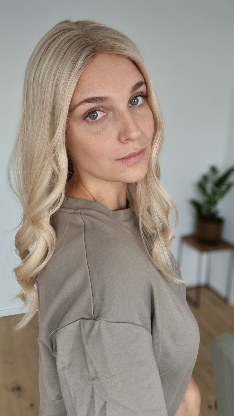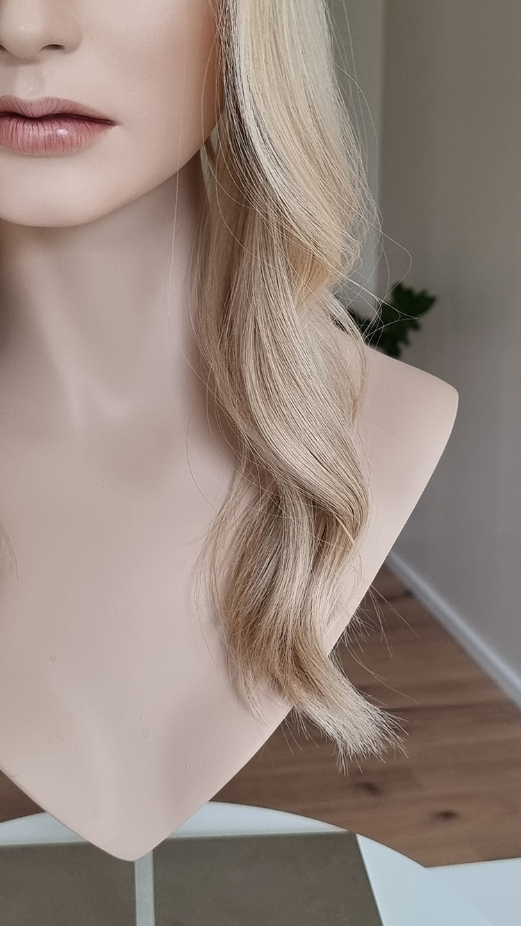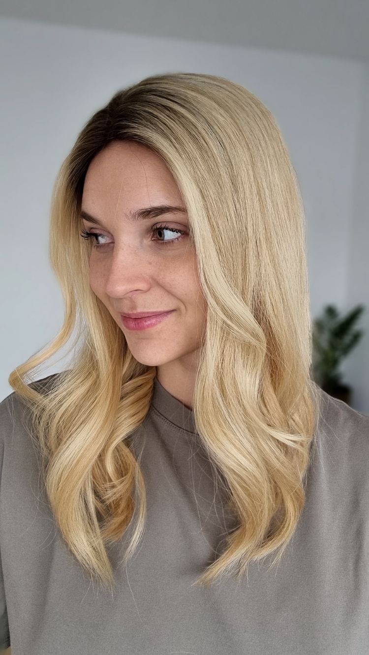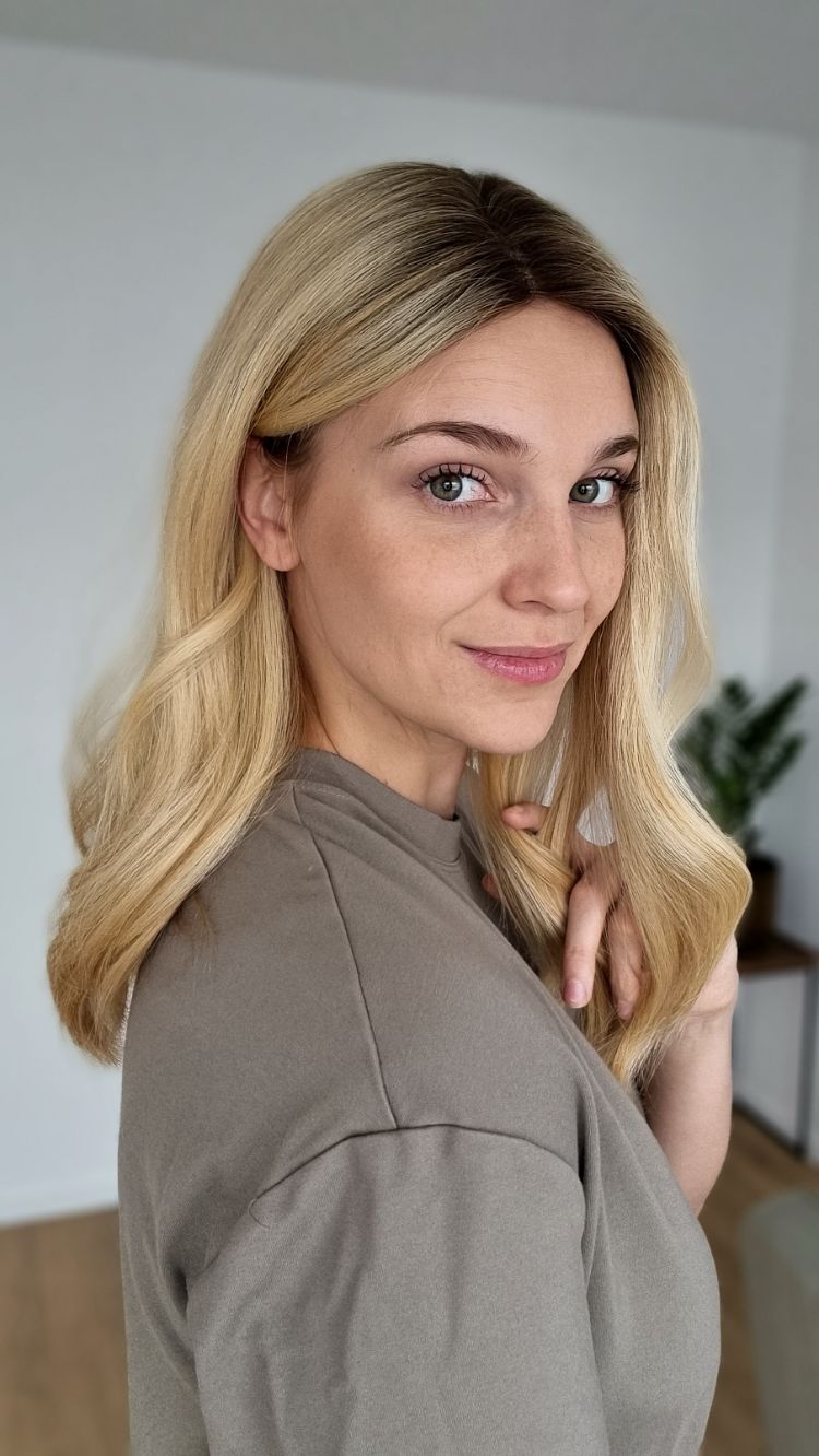 Bei Toppern kommt es generell auf das Farbmatch an, damit ein realistischer Look erzielt werden kann. Der Topper sollte also möglichst deinen Farbton treffen, das heißt wenn du Blond bist könnte eine Ice Ice Baby, Honey Swirl oder Goldstück zu dir passen.