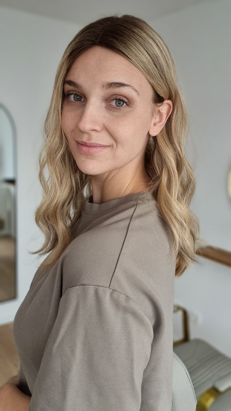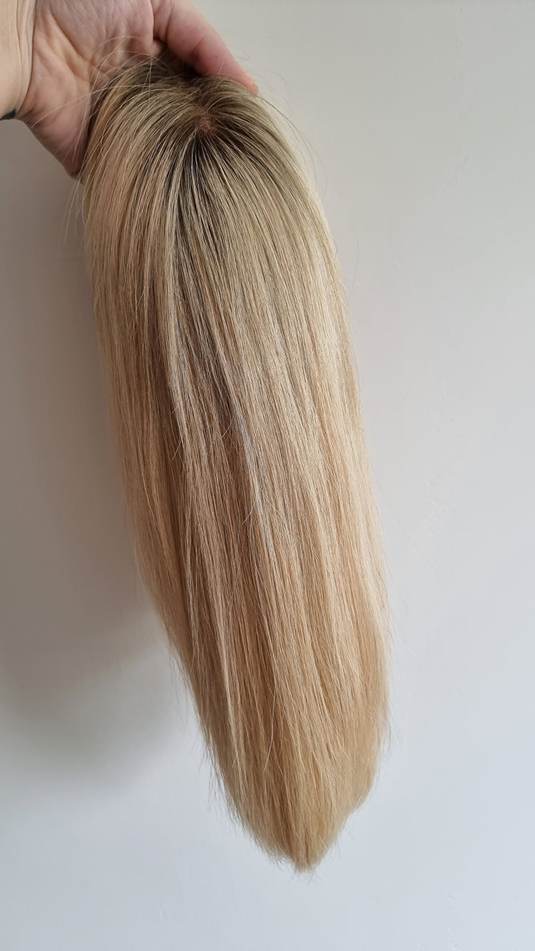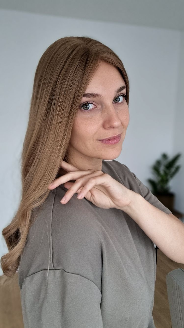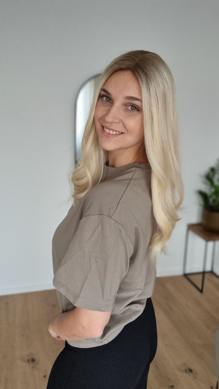 Bei Toppern kommt es generell auf das Farbmatch an, damit ein realistischer Look erzielt werden kann. Der Topper sollte also möglichst deinen Farbton treffen, das heißt wenn du Blond bist könnte eine Ice Ice Baby, Honey Swirl oder Goldstück zu dir passen.