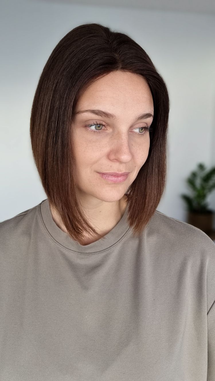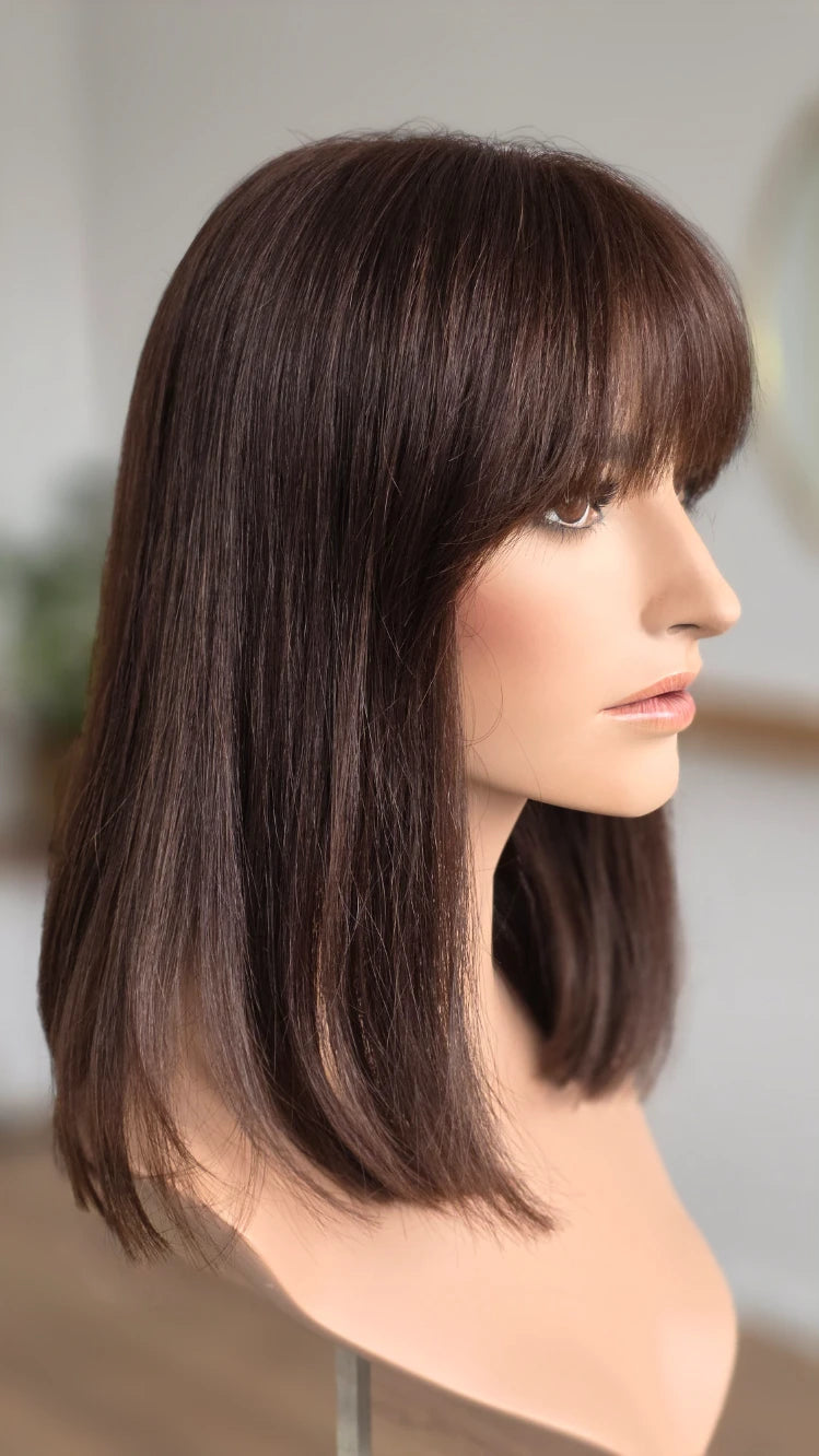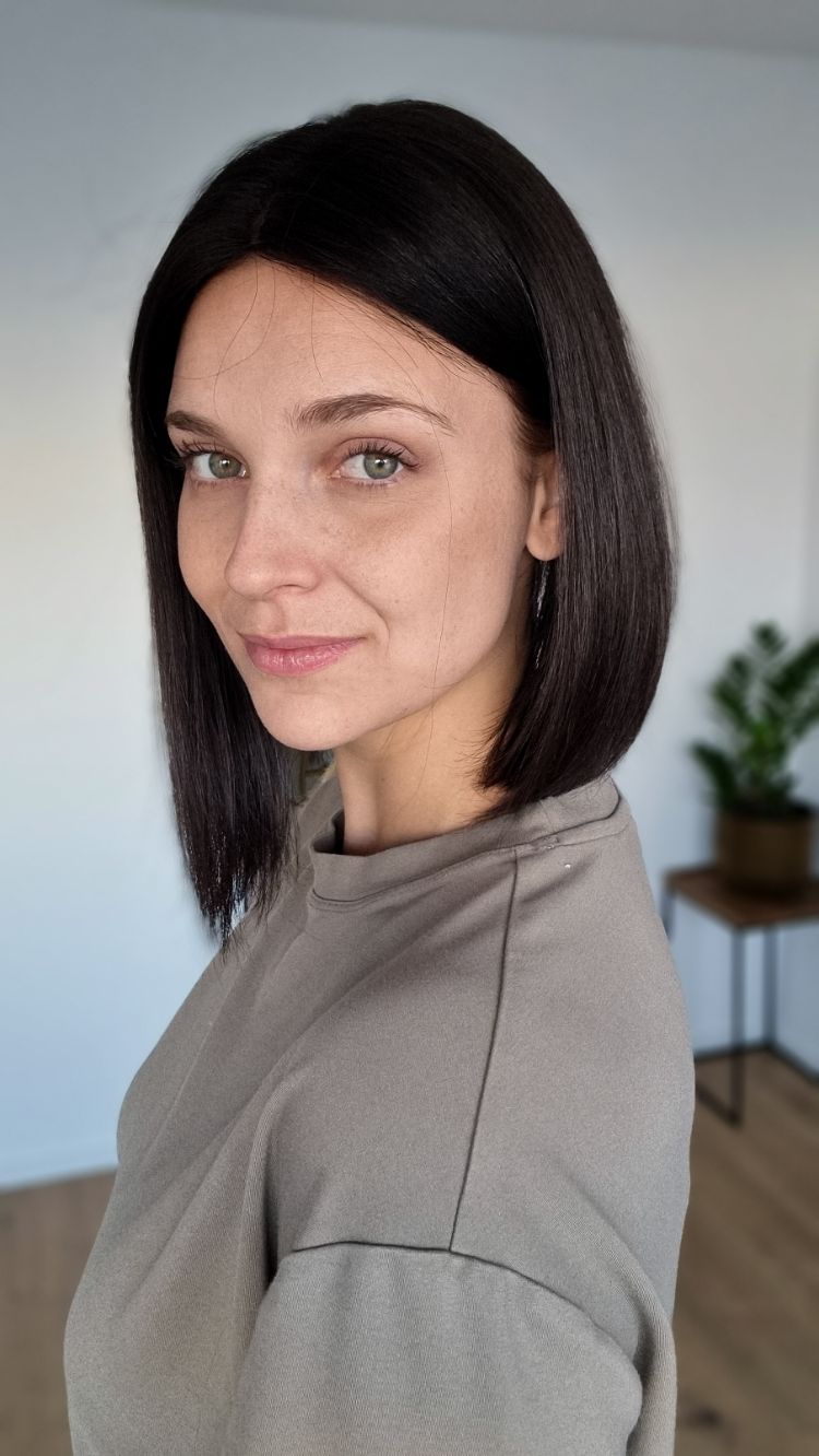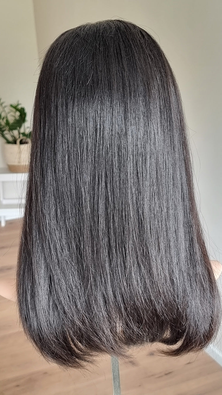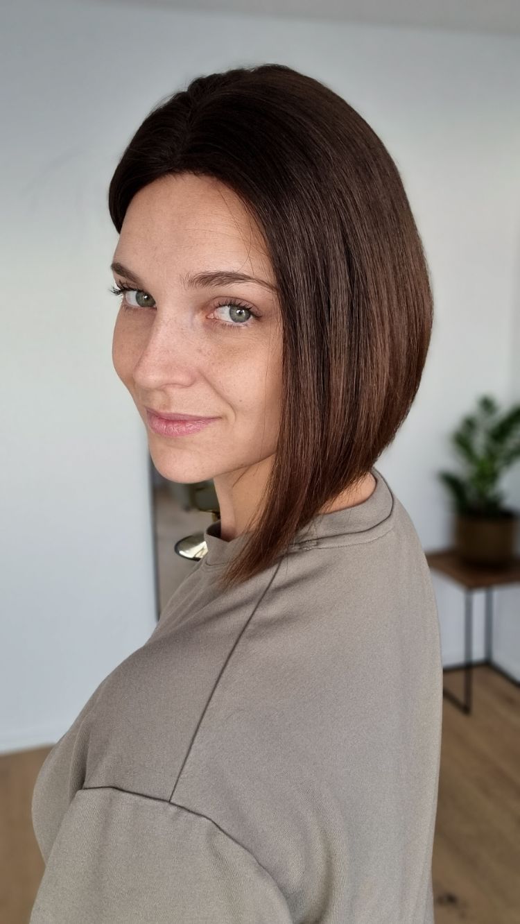 Du hast einen Stufenschnitt oder einen Bluntcut (alle Haare sind gleich lang)? - dann sollte der Topper zu deiner Frisur passend eingeschnitten werden.