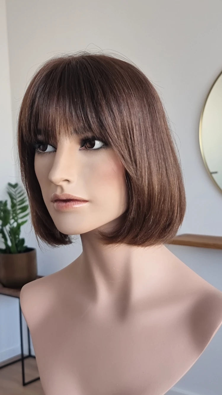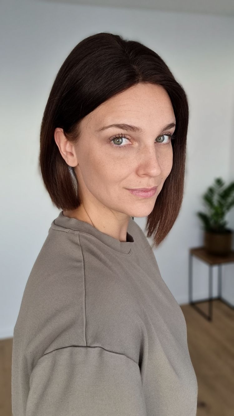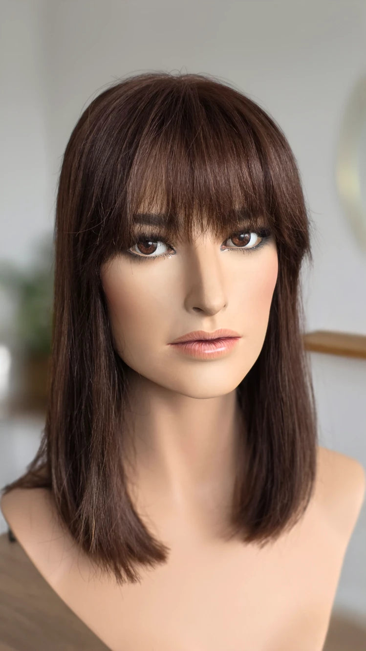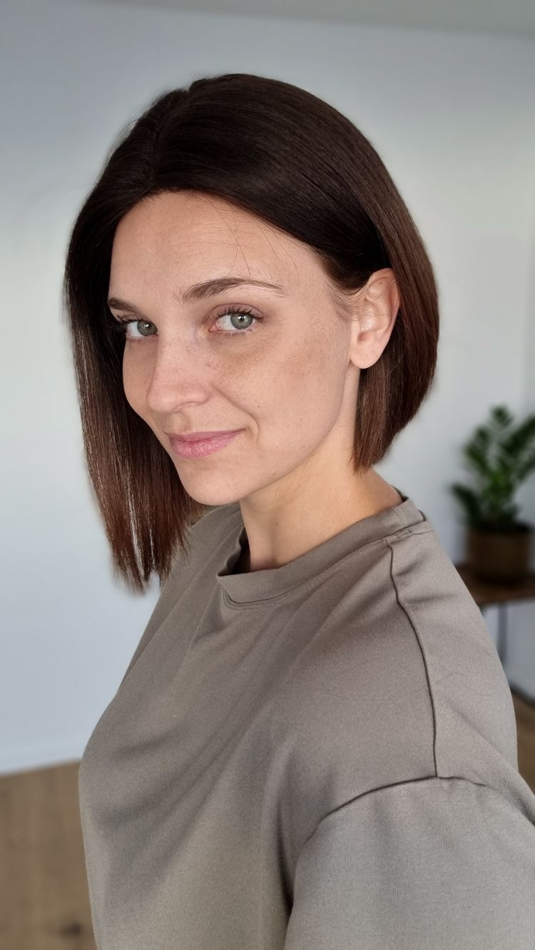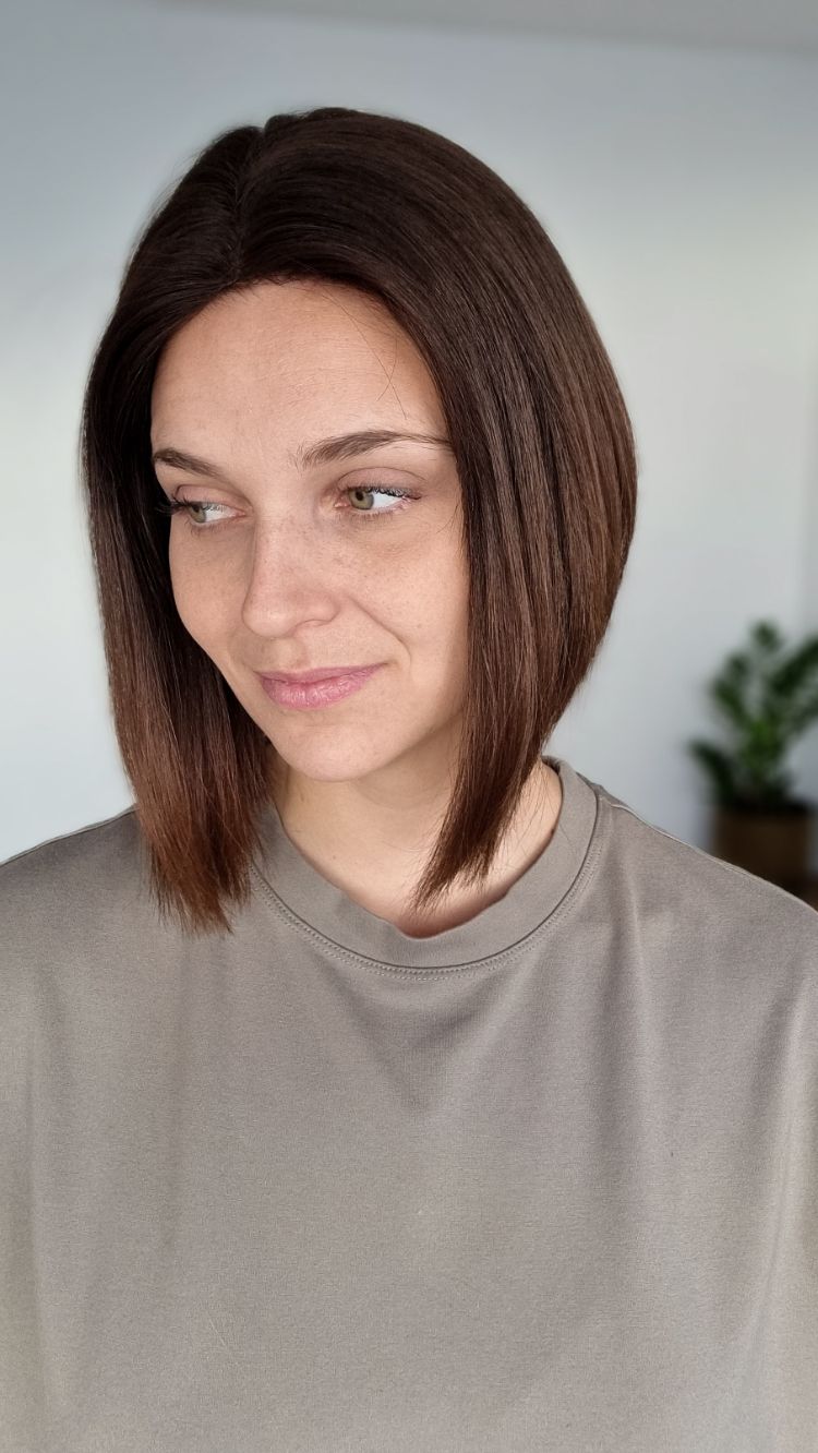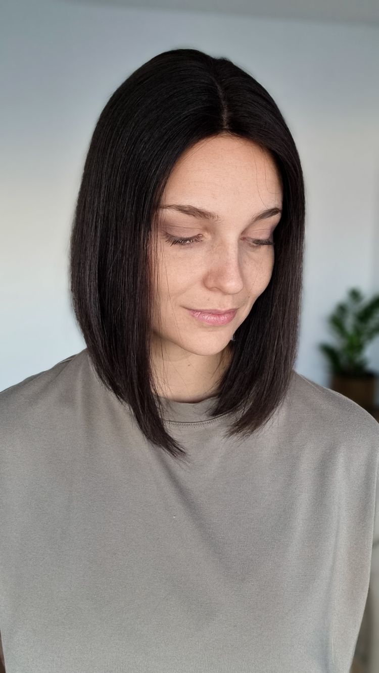 Du hast einen Stufenschnitt oder einen Bluntcut (alle Haare sind gleich lang)? - dann sollte der Topper zu deiner Frisur passend eingeschnitten werden.