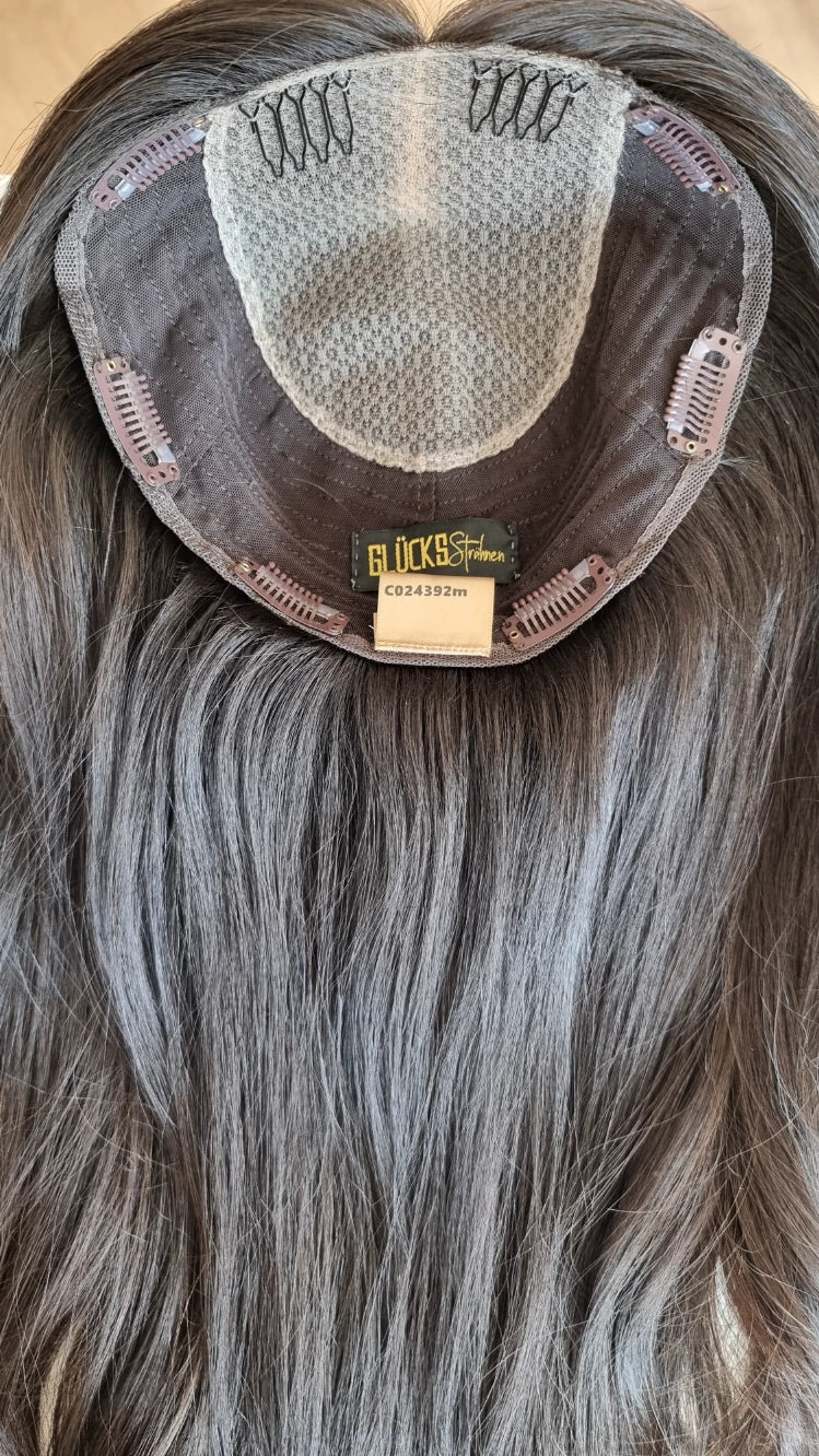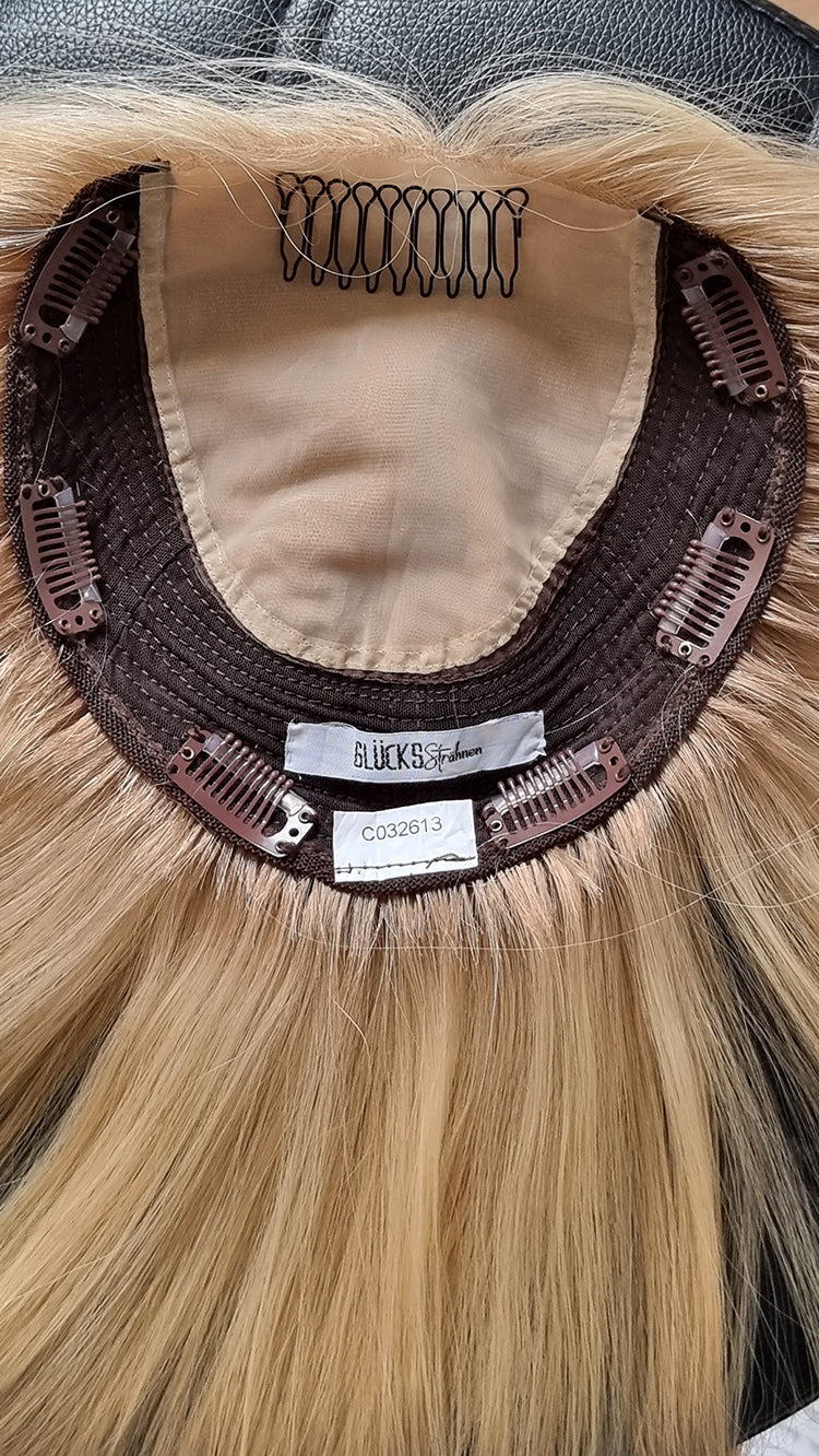 Der Crown-Topper ist extrem flach und liegt sehr dicht am eigenen Kopf an - das sorgt für ein sehr natürliches Aussehen ohne unerwünschtes Volumen am Oberkopf,
