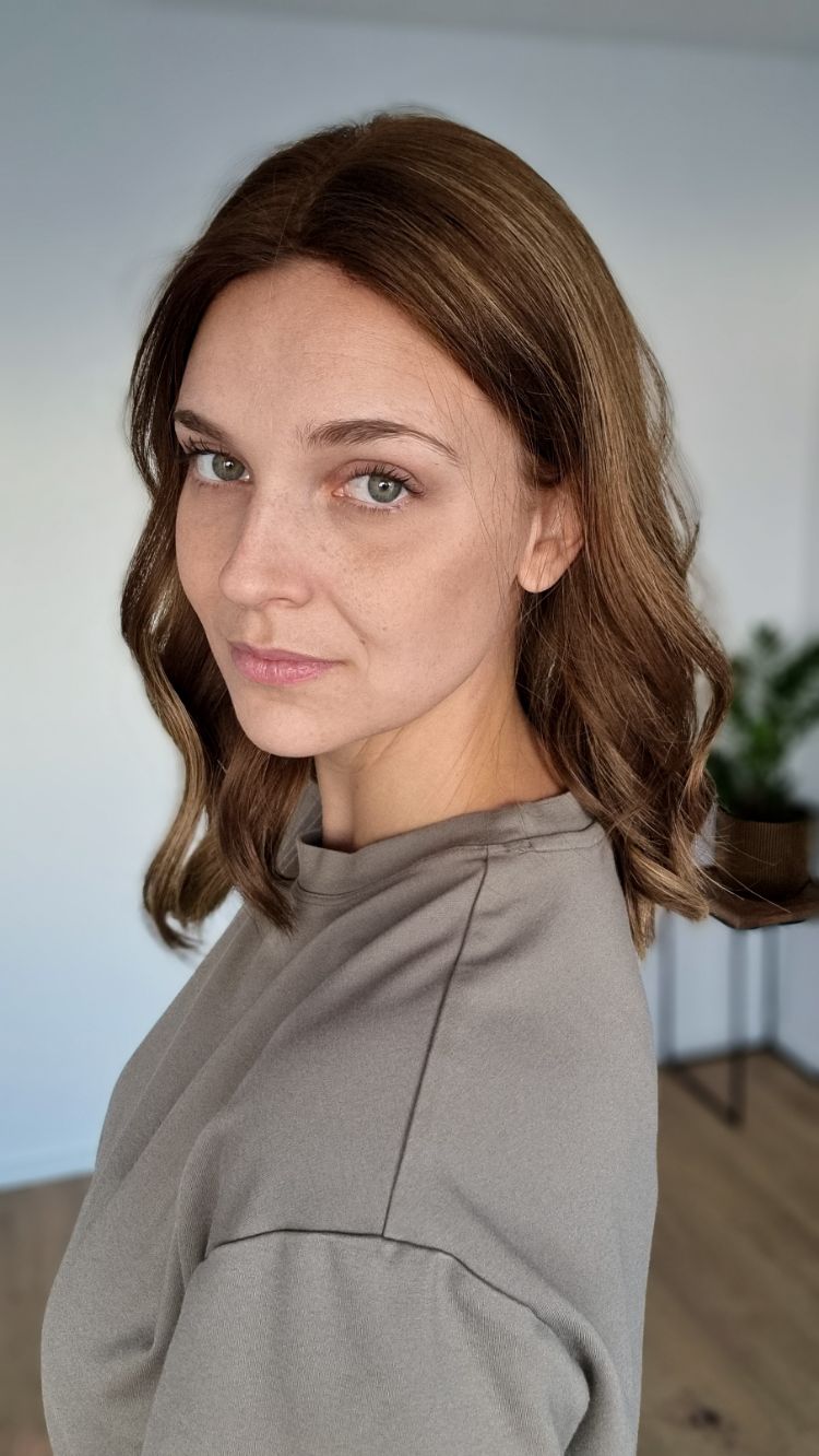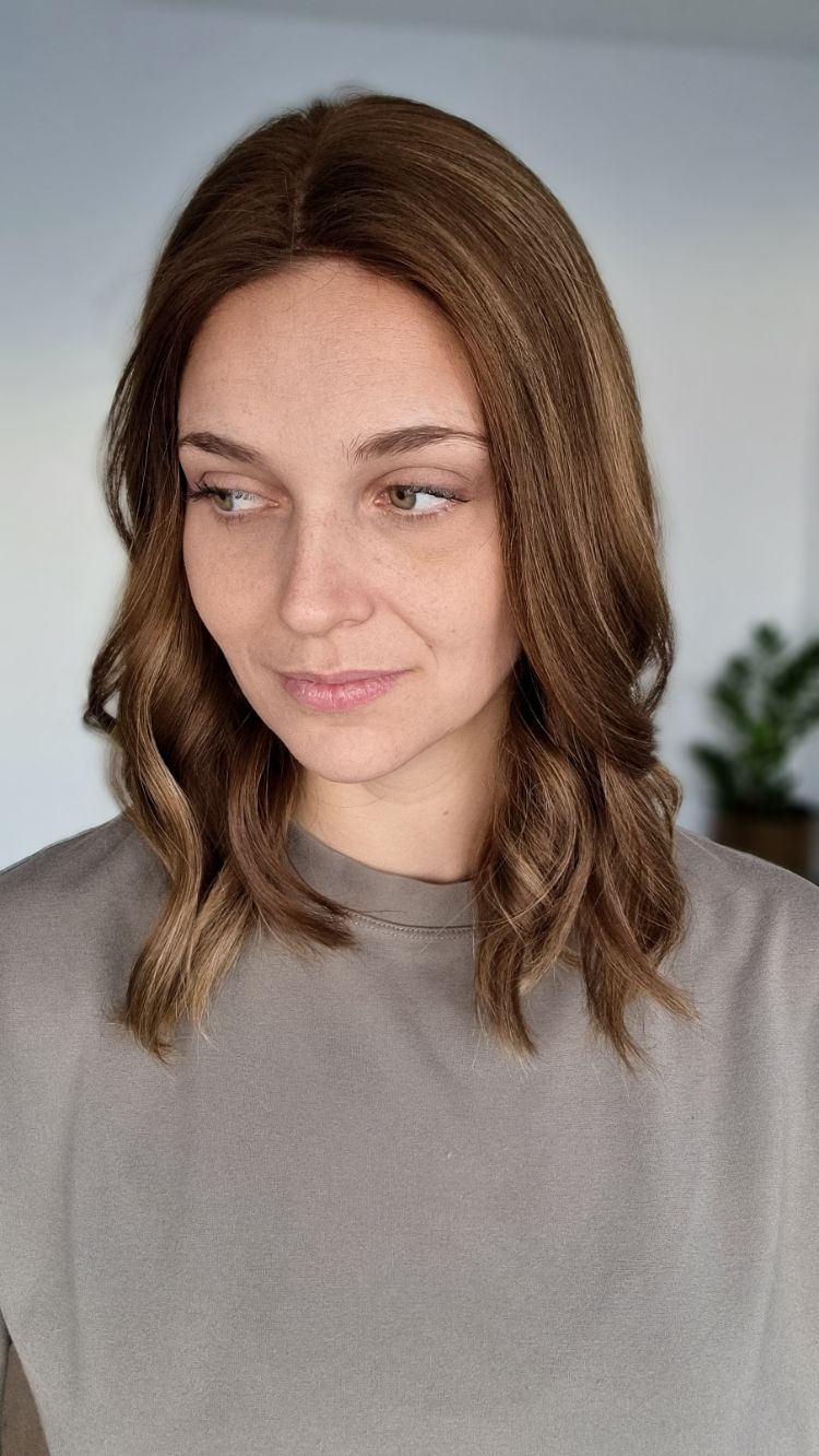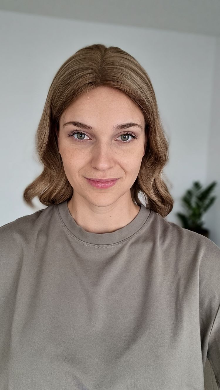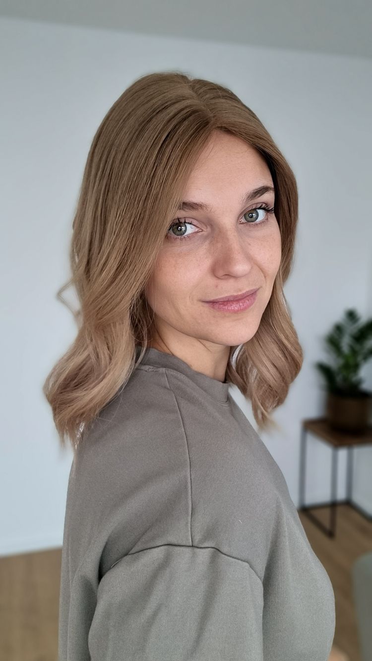 Dein eigenes Haar ist schulterlang oder kürzer? Dann solltest du keinen Topper wählen, der mehr als 5 cm länger ist. Bei dieser Länge vermischen sich das Eigen- und Topperhaar nicht optimal und es kommt zu einer deutlich sichtbaren Stufe. Das beeinträchtigt den Realismus sehr.
