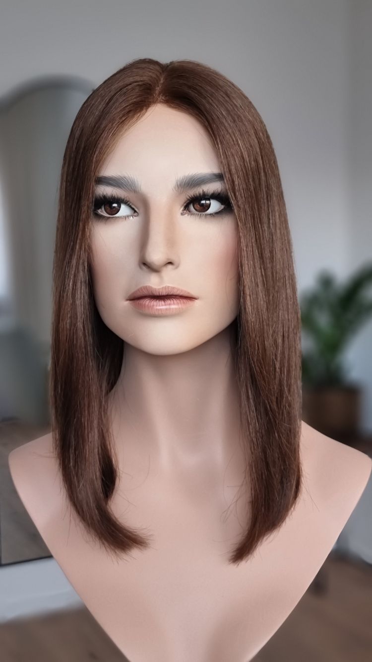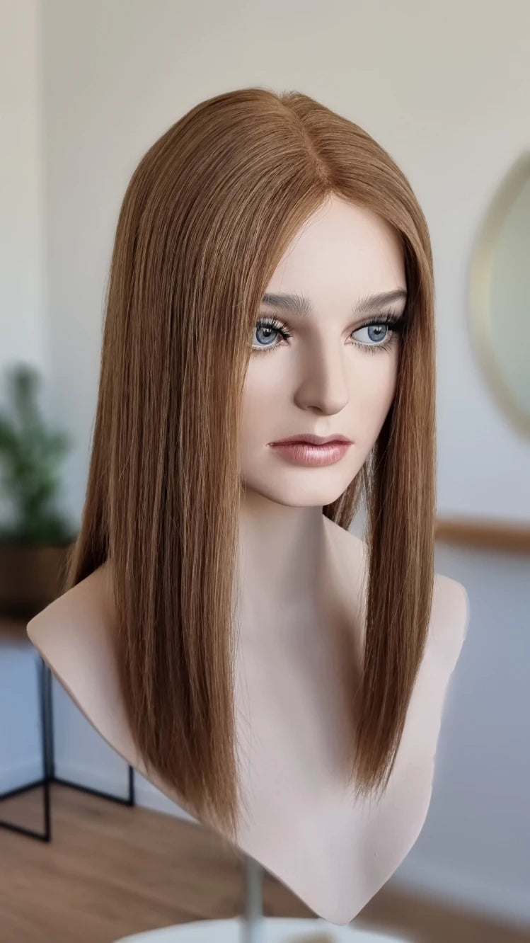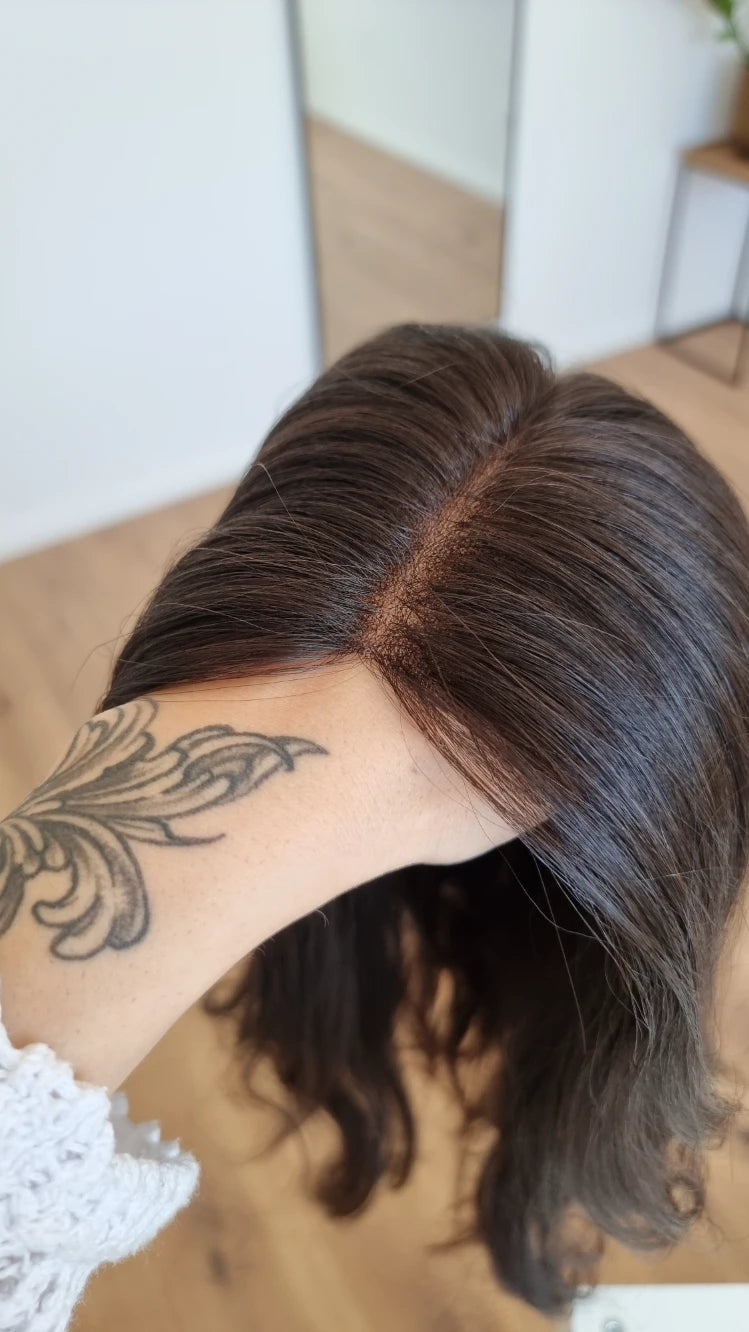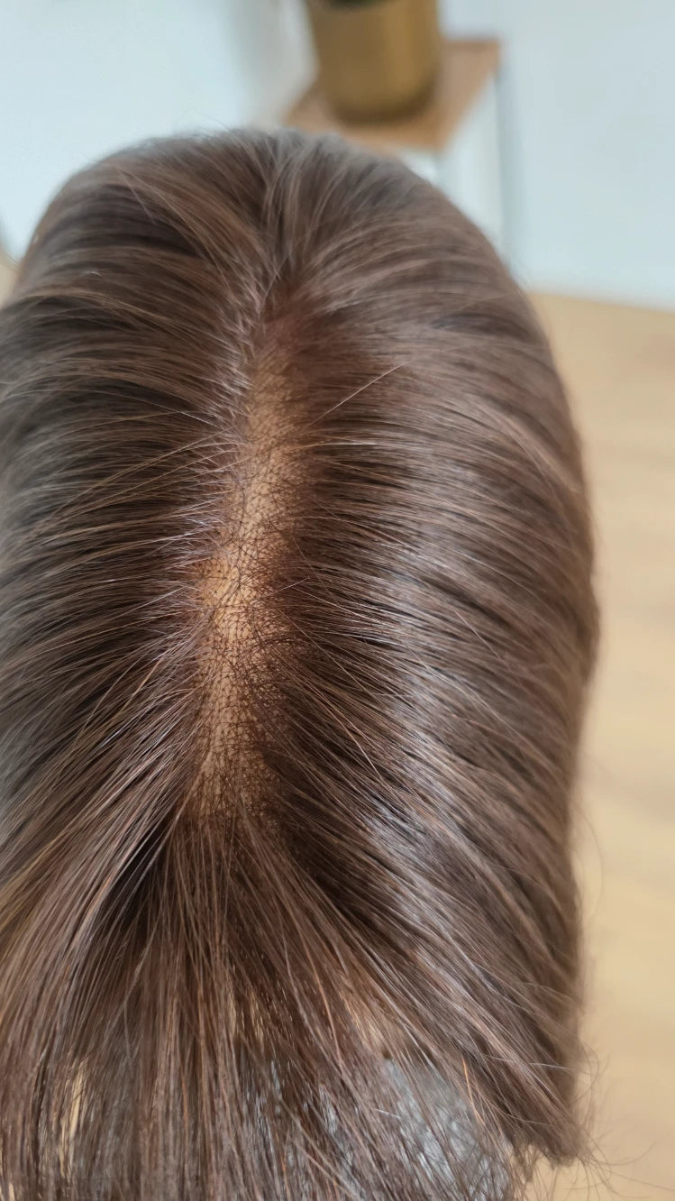 Diese Art von Haarteil ist besonders bei Frauen beliebt, die unter diffusem Haarausfall, erblich bedingtem Haarausfall oder einfach unter einem ausgedünnten Scheitel leiden.