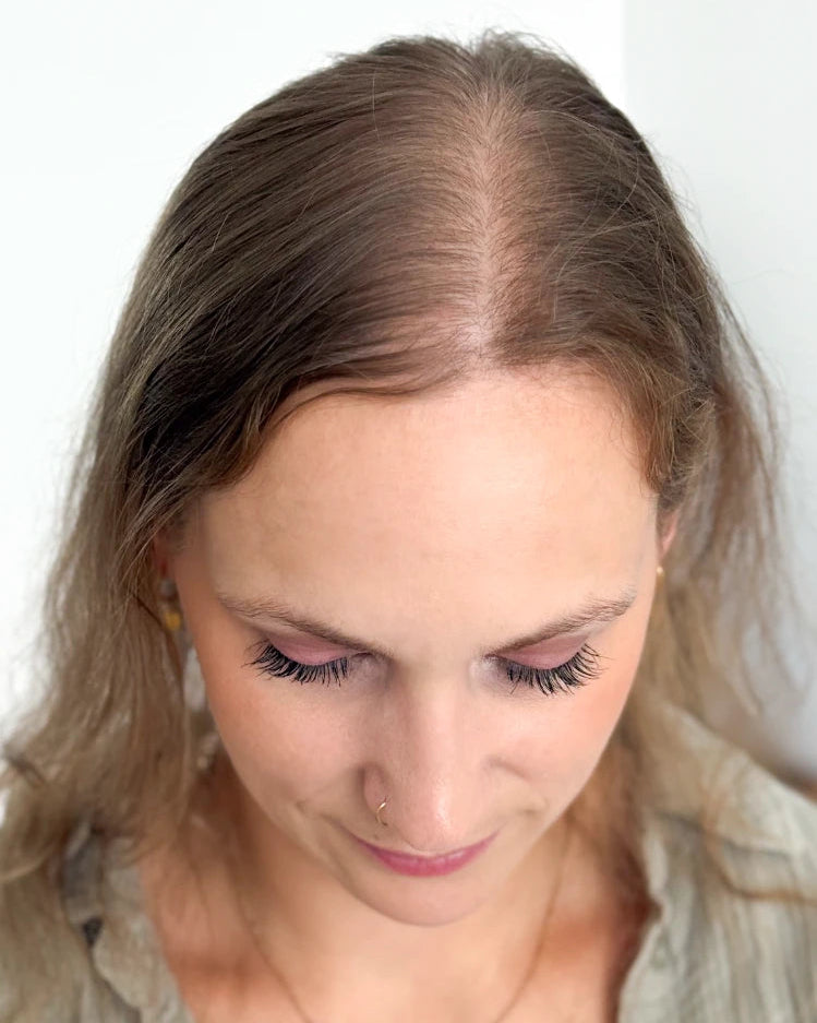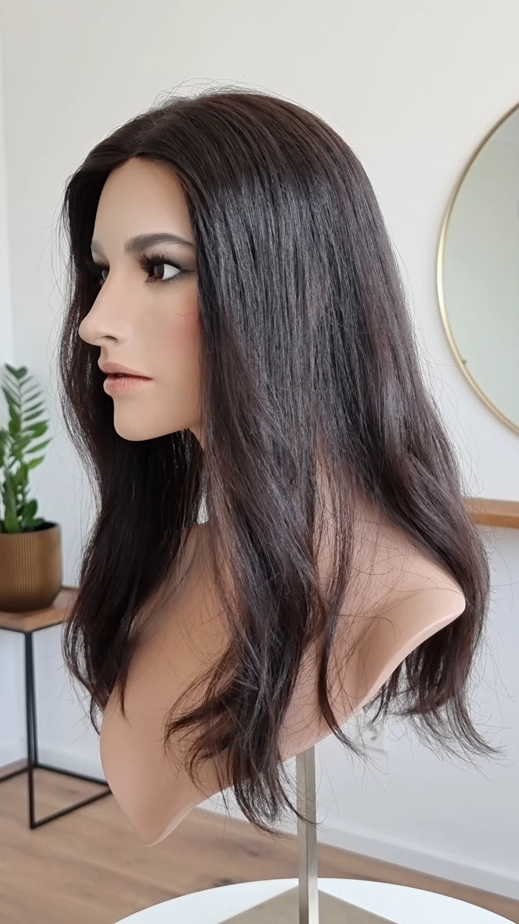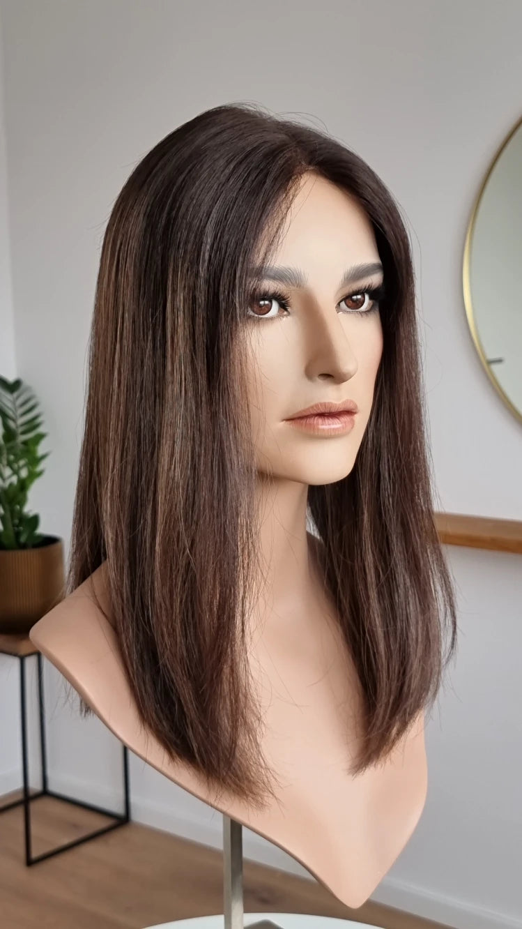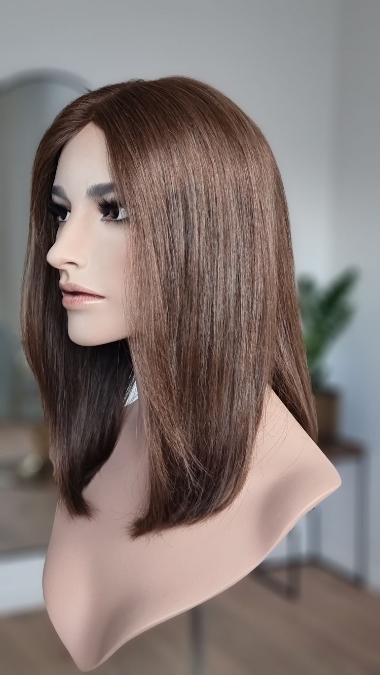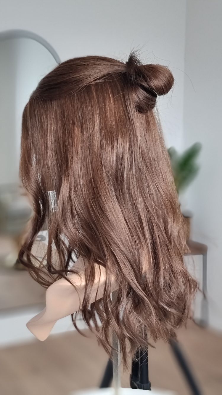Diese Art von Haarteil ist besonders bei Frauen beliebt, die unter diffusem Haarausfall, erblich bedingtem Haarausfall oder einfach unter einem ausgedünnten Scheitel leiden.