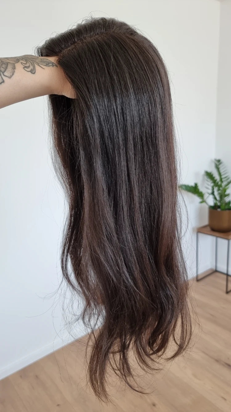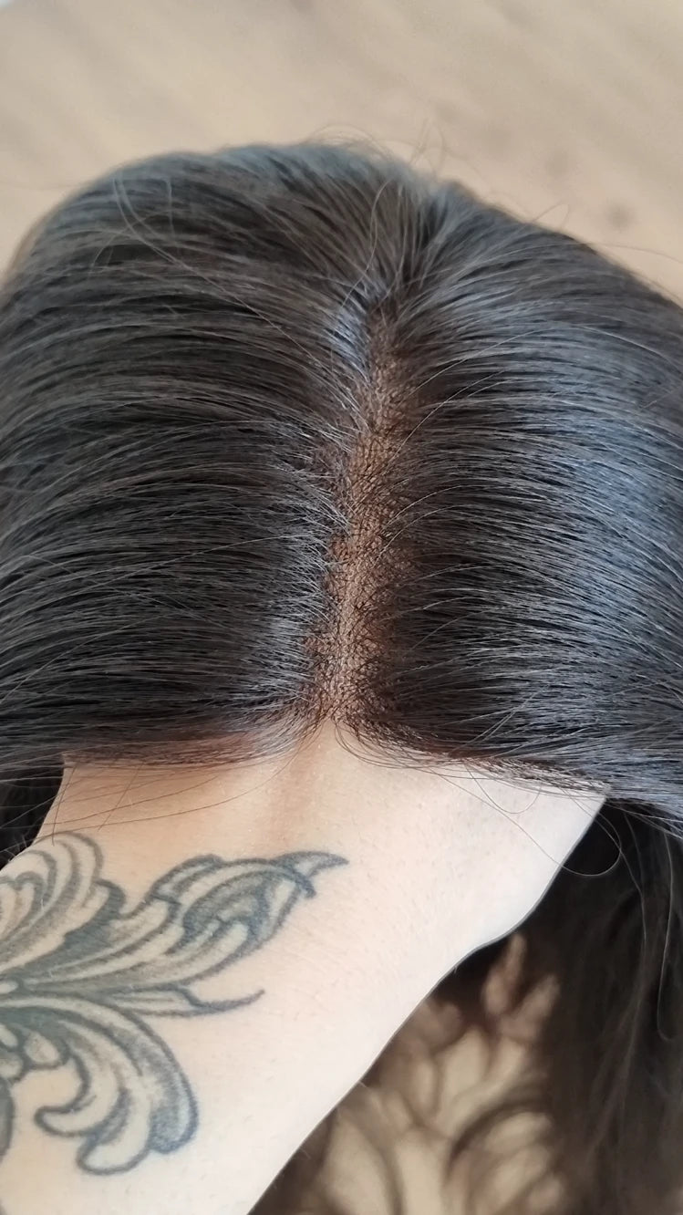 Der Crown-Topper muss wie dein echtes Haar regelmäßig gewaschen werden, je nach Intensivität der Nutzung alle 7-10 Tage.