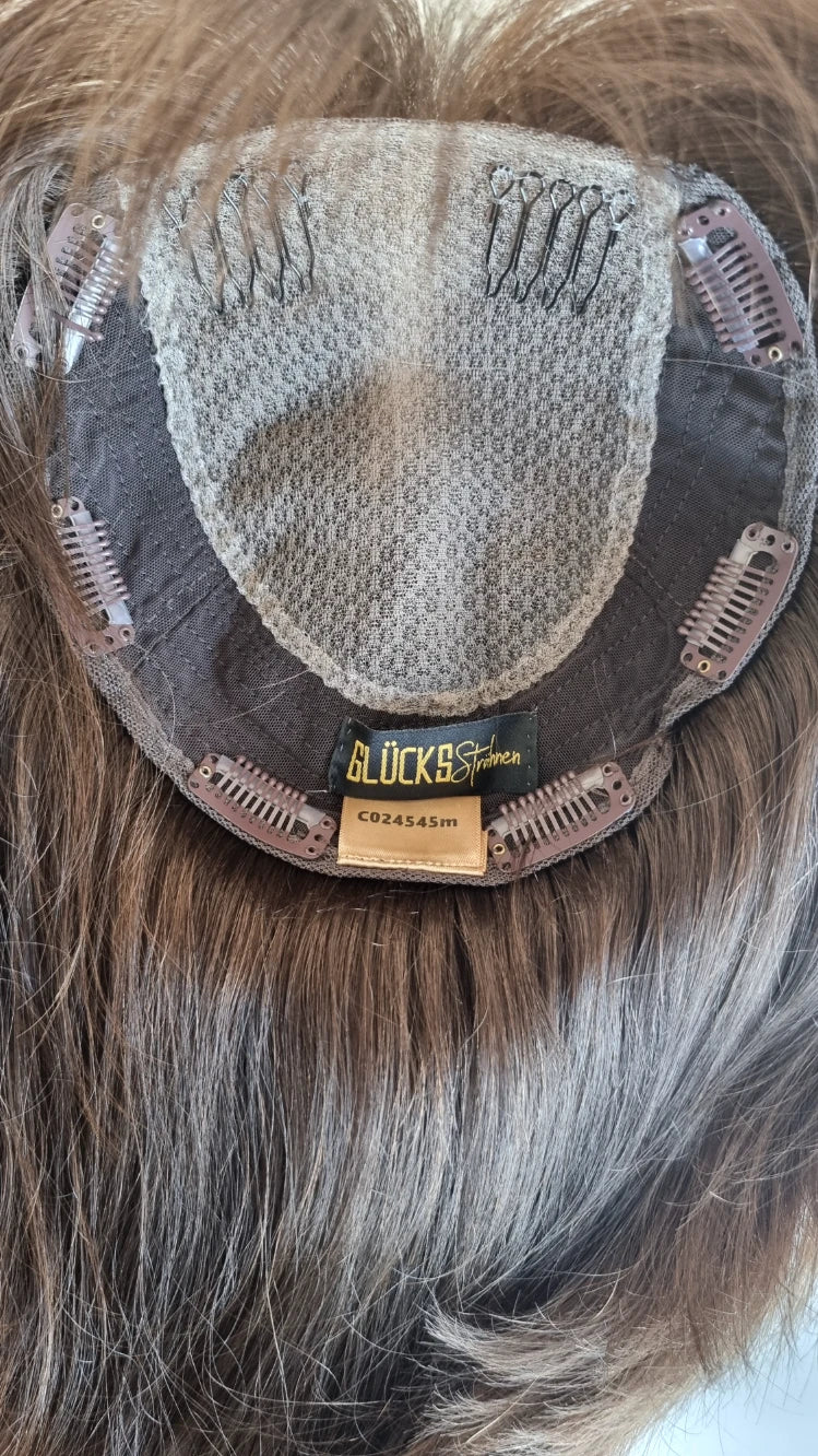 Unsere Crown-Topper sind besonders leicht durch ihre besondere Lace-Basis, welche die Kopfhaut atmen lässt – ideal für den Alltag.
