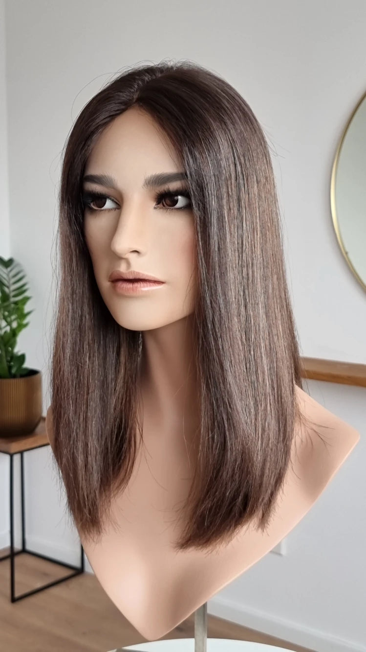Diese Art von Haarteil ist besonders bei Frauen beliebt, die unter diffusem Haarausfall, erblich bedingtem Haarausfall oder einfach unter einem ausgedünnten Scheitel leiden.