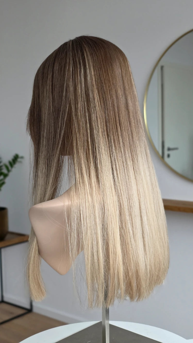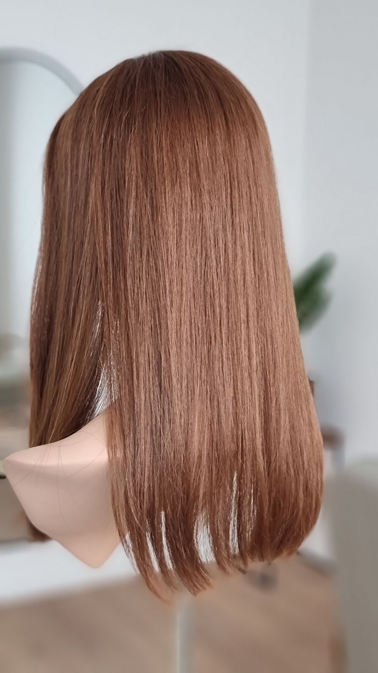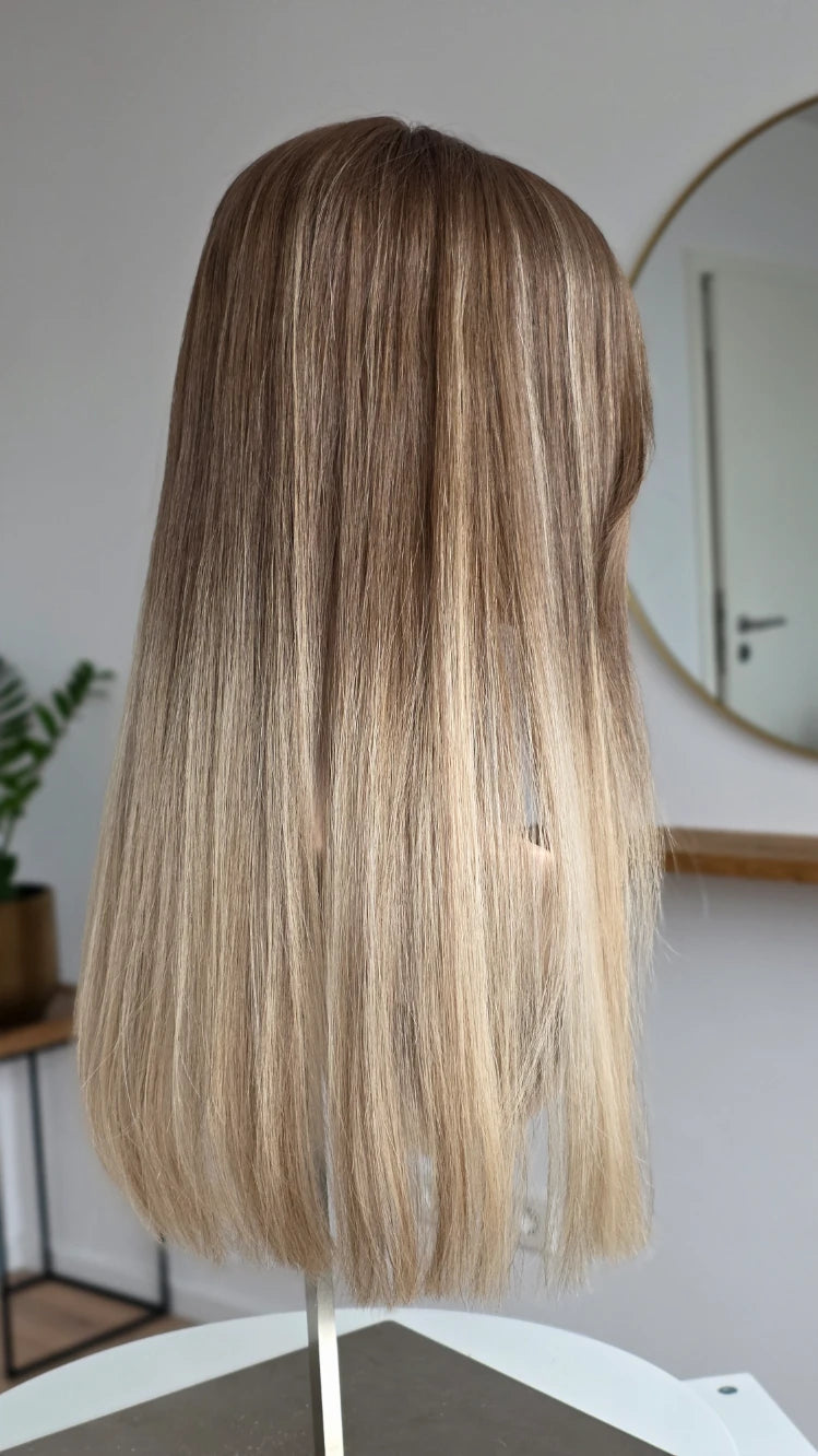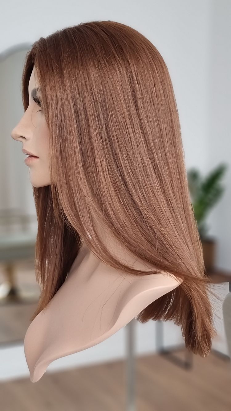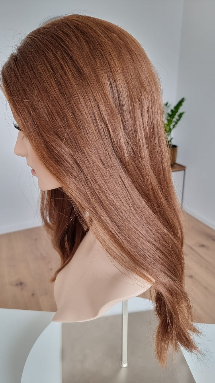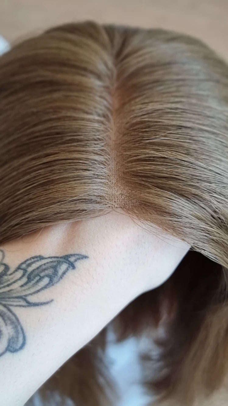 Ein Crown-Topper ist ein Haarteil mit sehr dünner Lace-Montur, das besonders für Frauen geeignet ist, die sich eine Lösung mit geringer Haardichte wünschen.