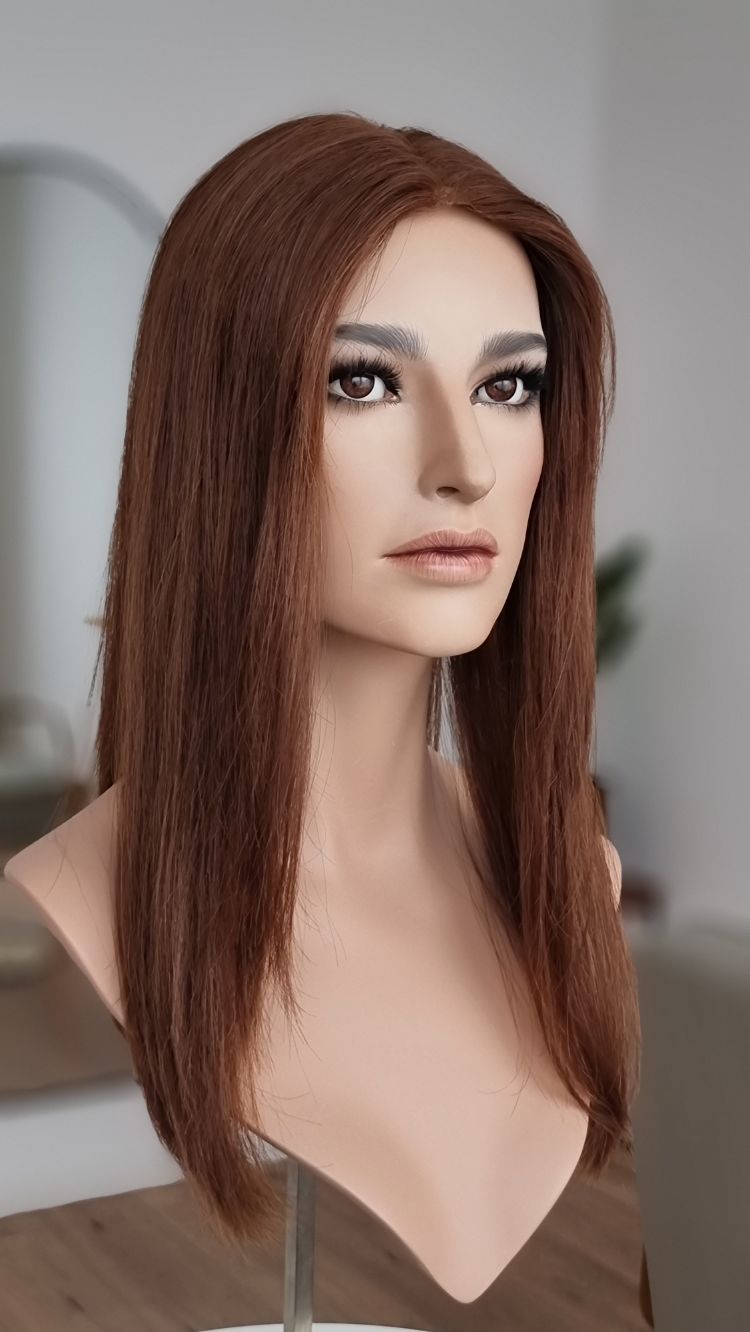 Diese Art von Haarteil ist besonders bei Frauen beliebt, die unter diffusem Haarausfall, erblich bedingtem Haarausfall oder einfach unter einem ausgedünnten Scheitel leiden.