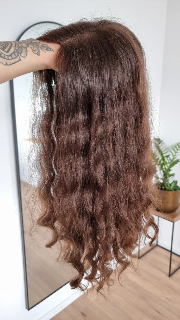 Der Crown-Topper muss wie dein echtes Haar regelmäßig gewaschen werden, je nach Intensivität der Nutzung alle 7-10 Tage.