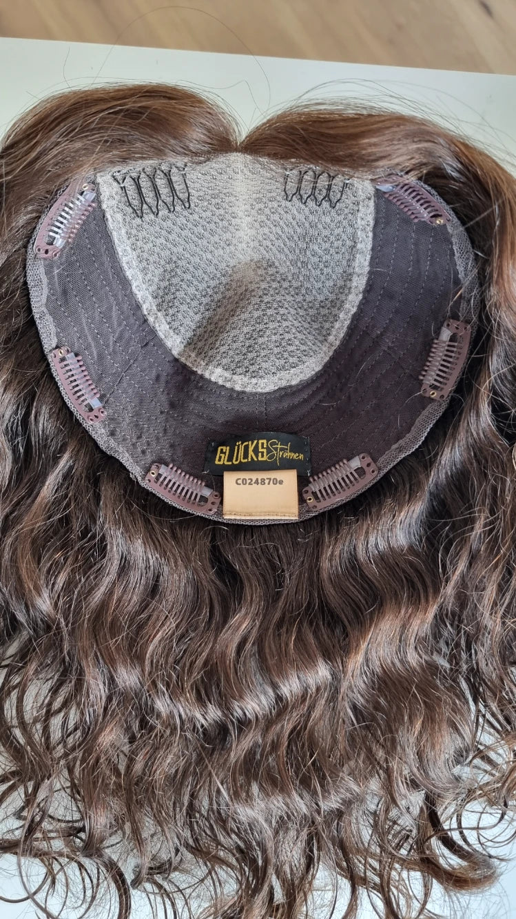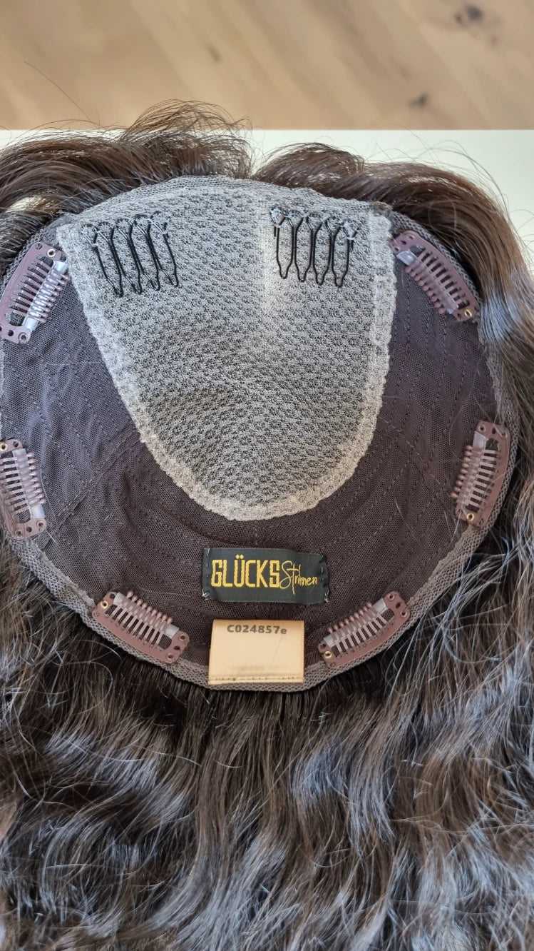 Der Crown-Topper ist extrem flach und liegt sehr dicht am eigenen Kopf an - das sorgt für ein sehr natürliches Aussehen ohne unerwünschtes Volumen am Oberkopf,