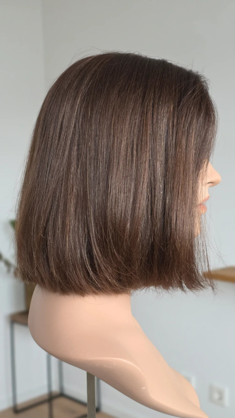 Du hast einen Stufenschnitt oder einen Bluntcut (alle Haare sind gleich lang)? - dann sollte der Topper zu deiner Frisur passend eingeschnitten werden.