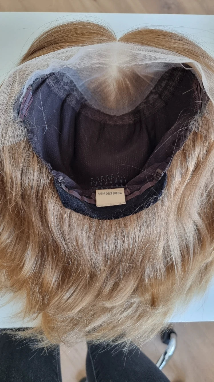 Diese Perücke besteht zu 100 % aus echtem Remy-Haar und kann wie das eigene Haar frisiert werden. Du kannst es glätten, föhnen und locken wie es dir beliebt und es sind keine teuren Pflegeprodukte notwendig. Alles, was du an Pflege benötigst, erhältst du im Frisörbedarf